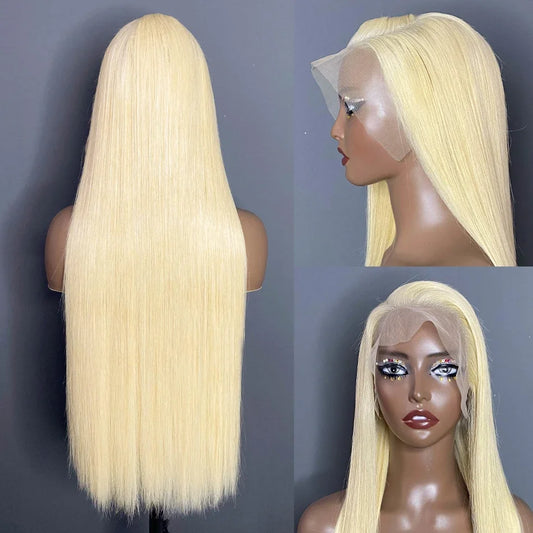 HD Lace Frontal Wig Straight Blonde Human Hair Plucked Glueless Ready To Wear