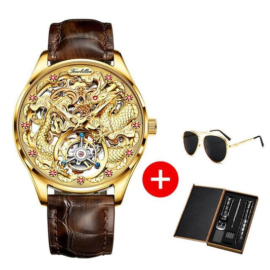 Luxury Men Mechanical Watches Gold Tourbillon Watch Sapphire Waterproof Skeleton