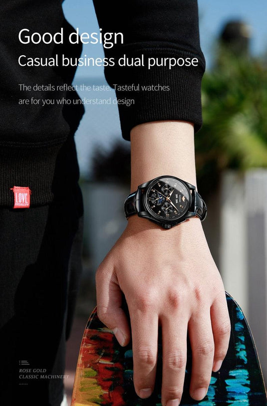 Men's Mechanical Watch Moon Phase Sapphire Multifunctional Automatic Watch Leather Bracelet Watch