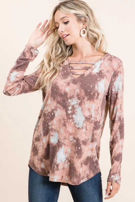 Sold outBiBi Tie Dye French Terry V-Neck Top