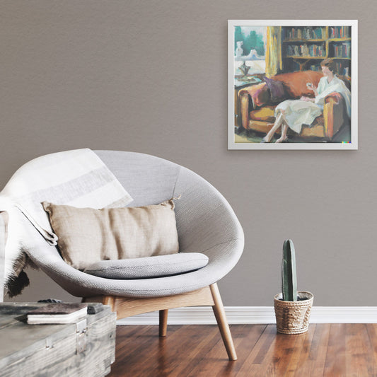 Women Sitting In the Living Room Drinking wine Semi-gloss paper framed in 1 inch 100% real wood frames with a matte enamel finish.
