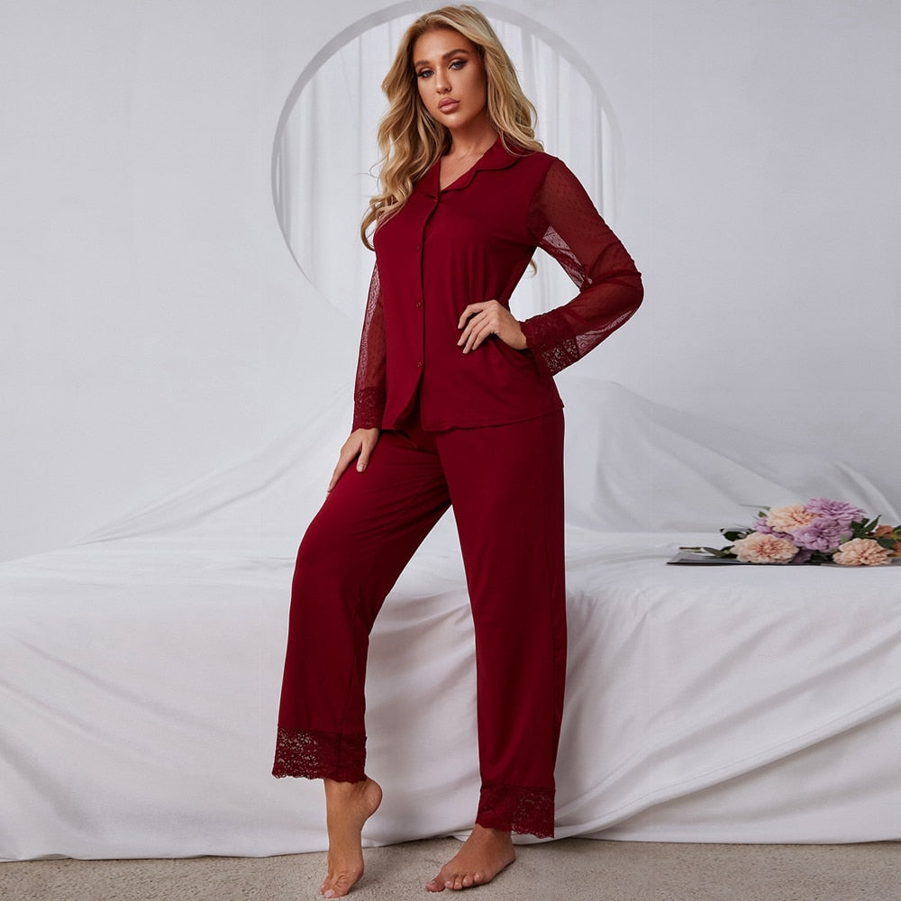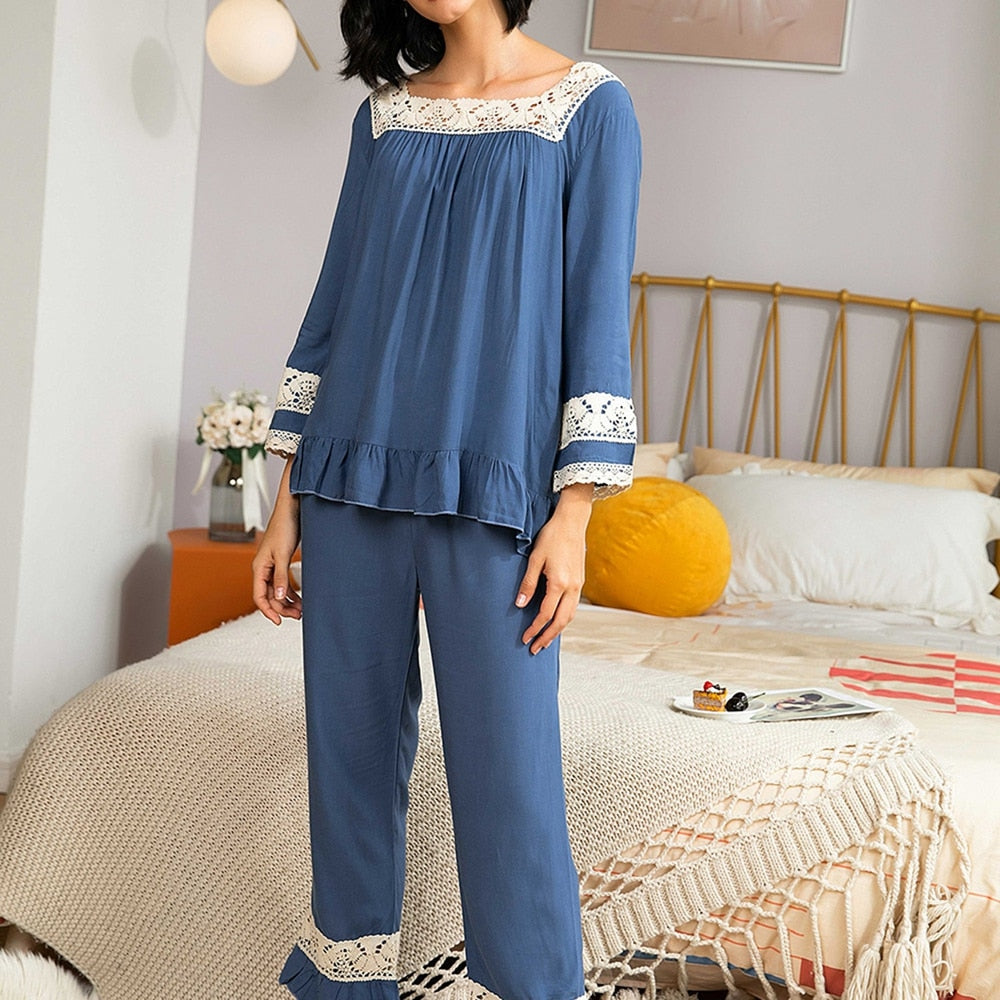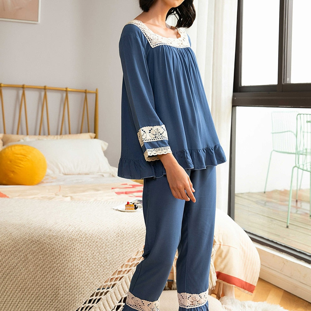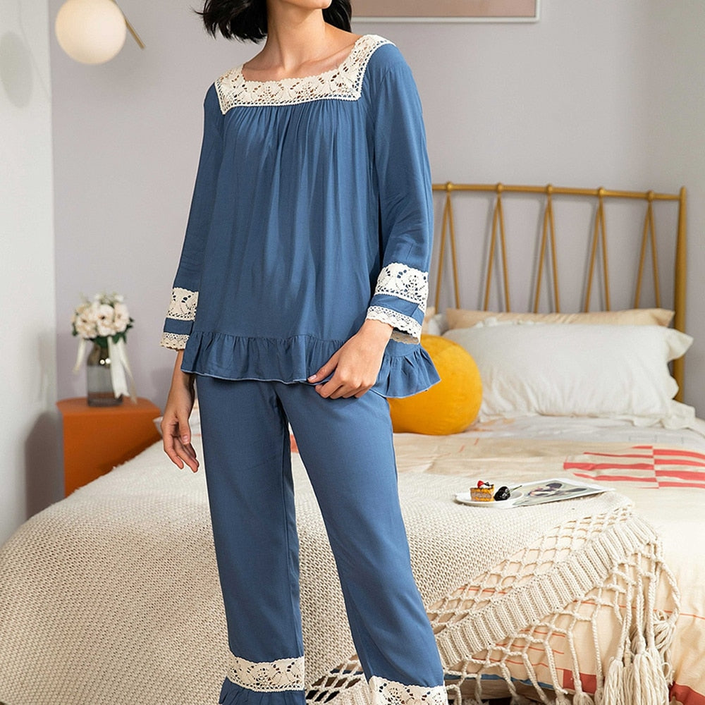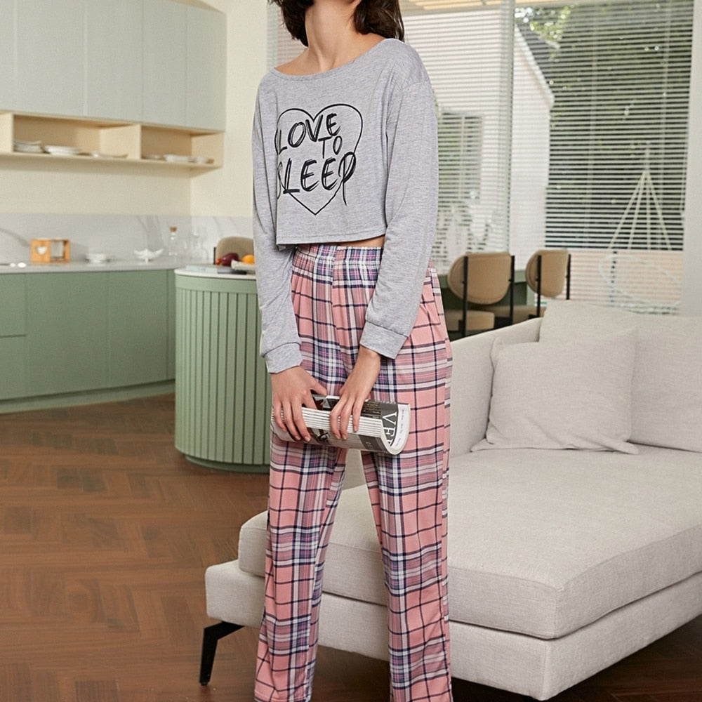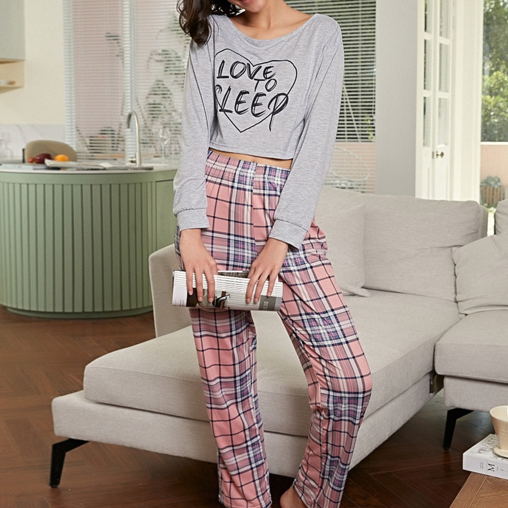Autumn Women Long-Sleeved Pajamas Set