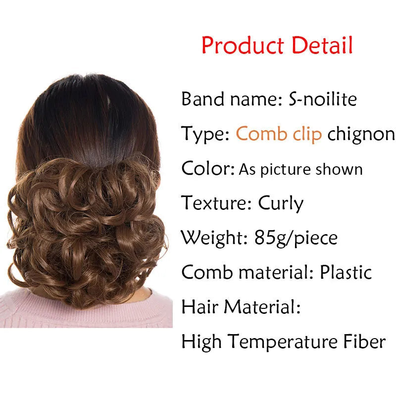 LARGE Comb Clip Curly Hair Extension Synthetic Hair Pieces Updo Cover Hairpiece Extension Hair Bun