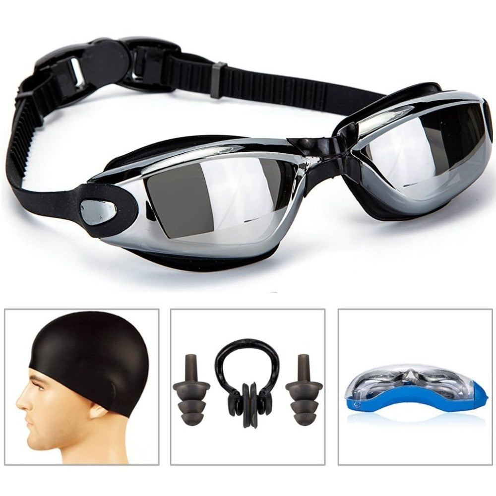 Professional Swimming Goggles With Hat and Ear Plug Nose Clip Suit Waterproof Swim Glasses anti-fog Sport Swim Eyewear