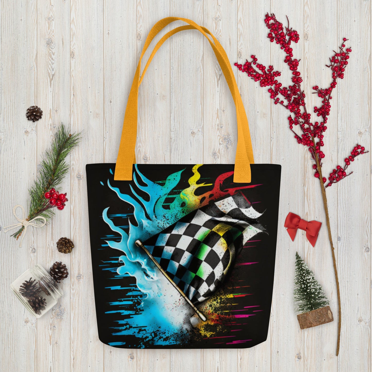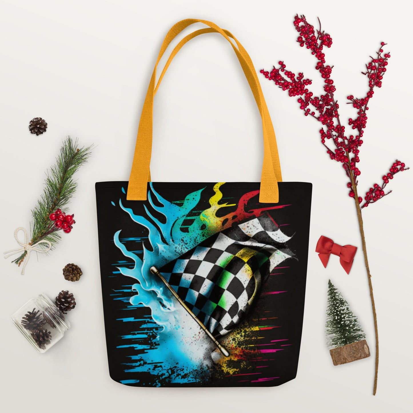 A spacious and trendy tote bag to help you carry around everything that matters. • 100% spun polyester fabric • Bag size: 15″ × 15″ (38.1 × 38.1 cm) • Capacity: 2.6 US gal (10 l) • Maximum weight limit: 44lbs (20 kg) • Dual handles made from 100% natural cotton bull denim • Handle length 11.8″ (30 cm), width 1″ (2.5 cm) • The handles can slightly differ depending on the fulfillment location • Blank product components sourced from China