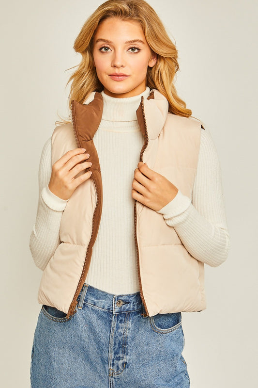 Love Tree Zip Up Cropped Contrast Reversible Vest