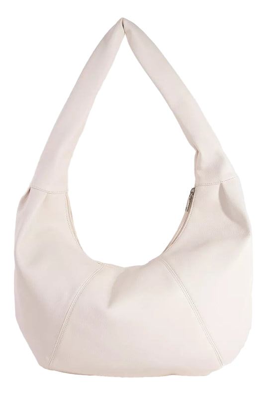 Luxe Panel Stitch Crescent Shoulder Bag | Faux Leather Handbag