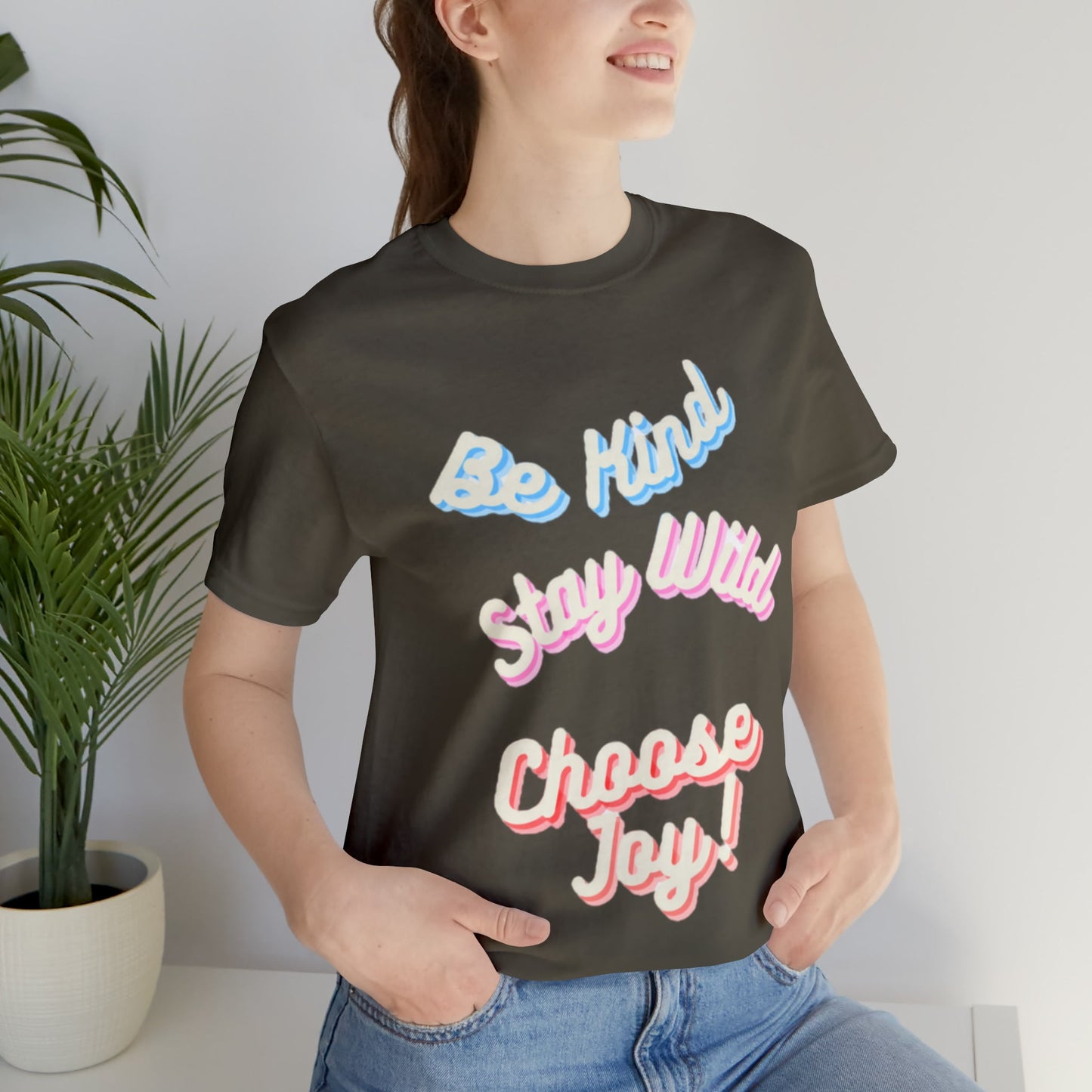 Be Kind, Stay Wild, Choose Joy. Unisex Jersey Short Sleeve Tee