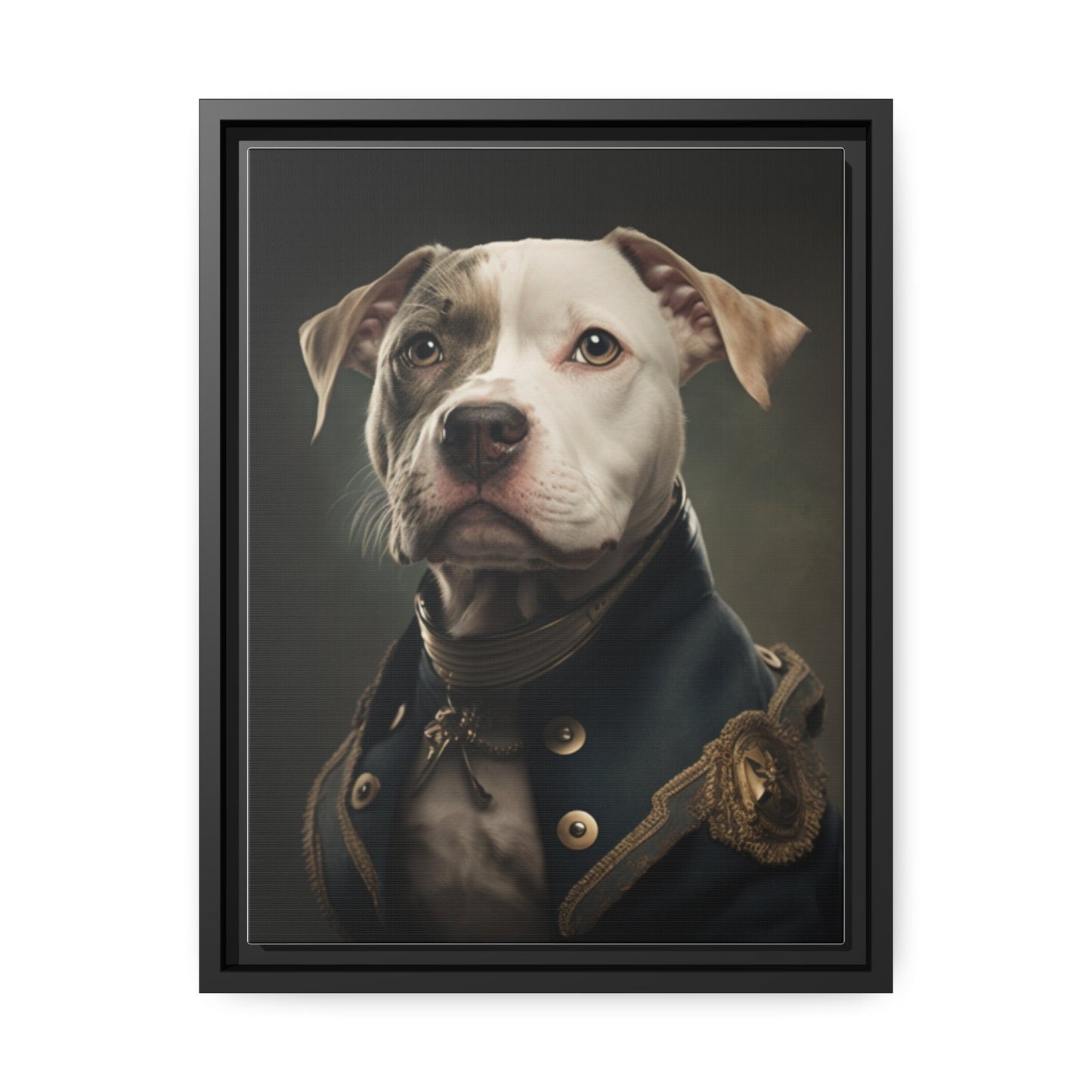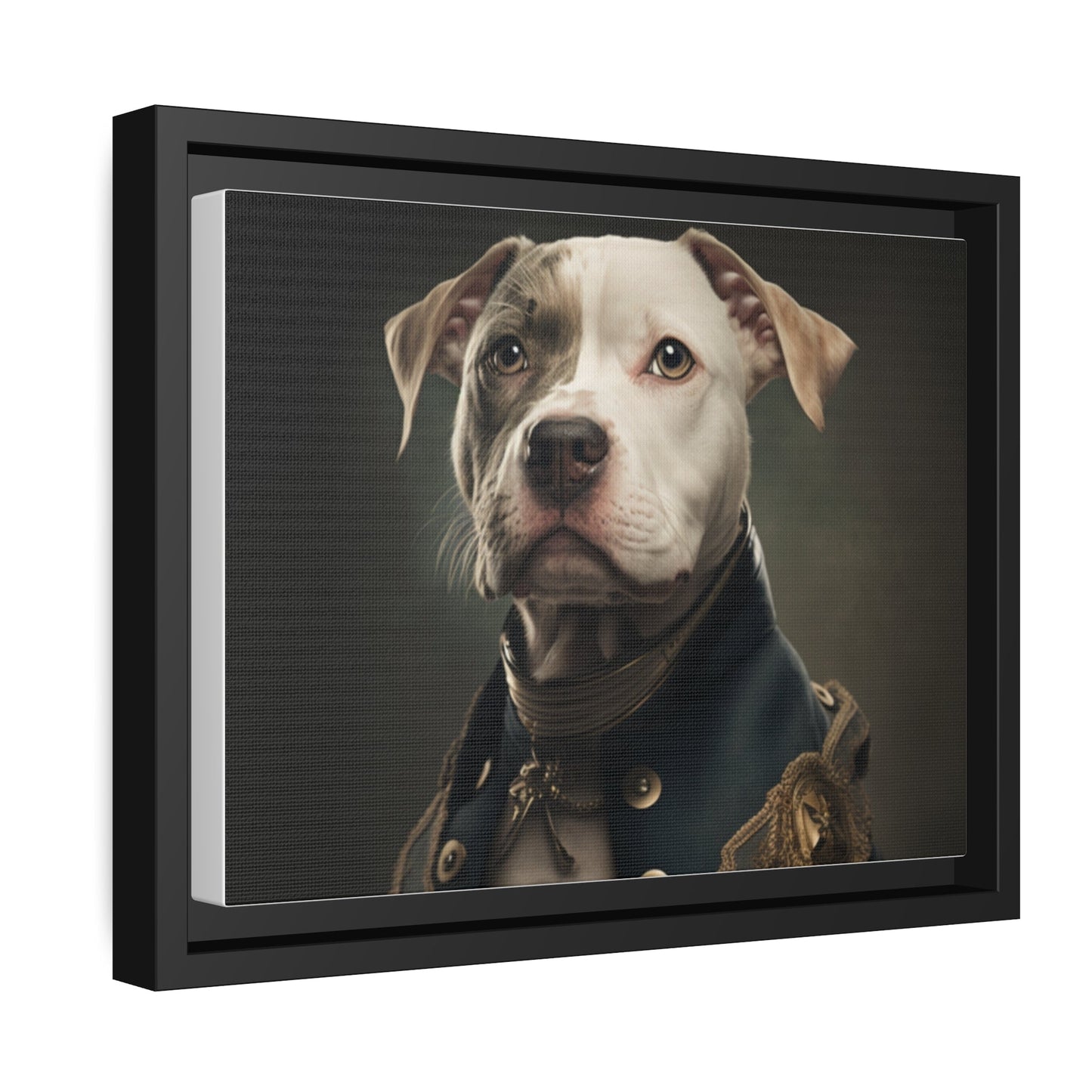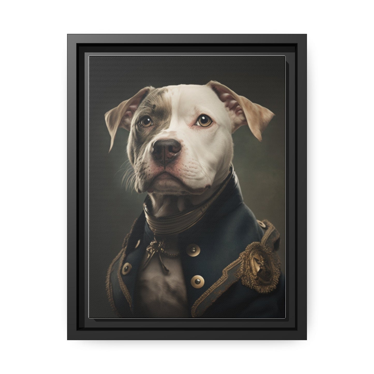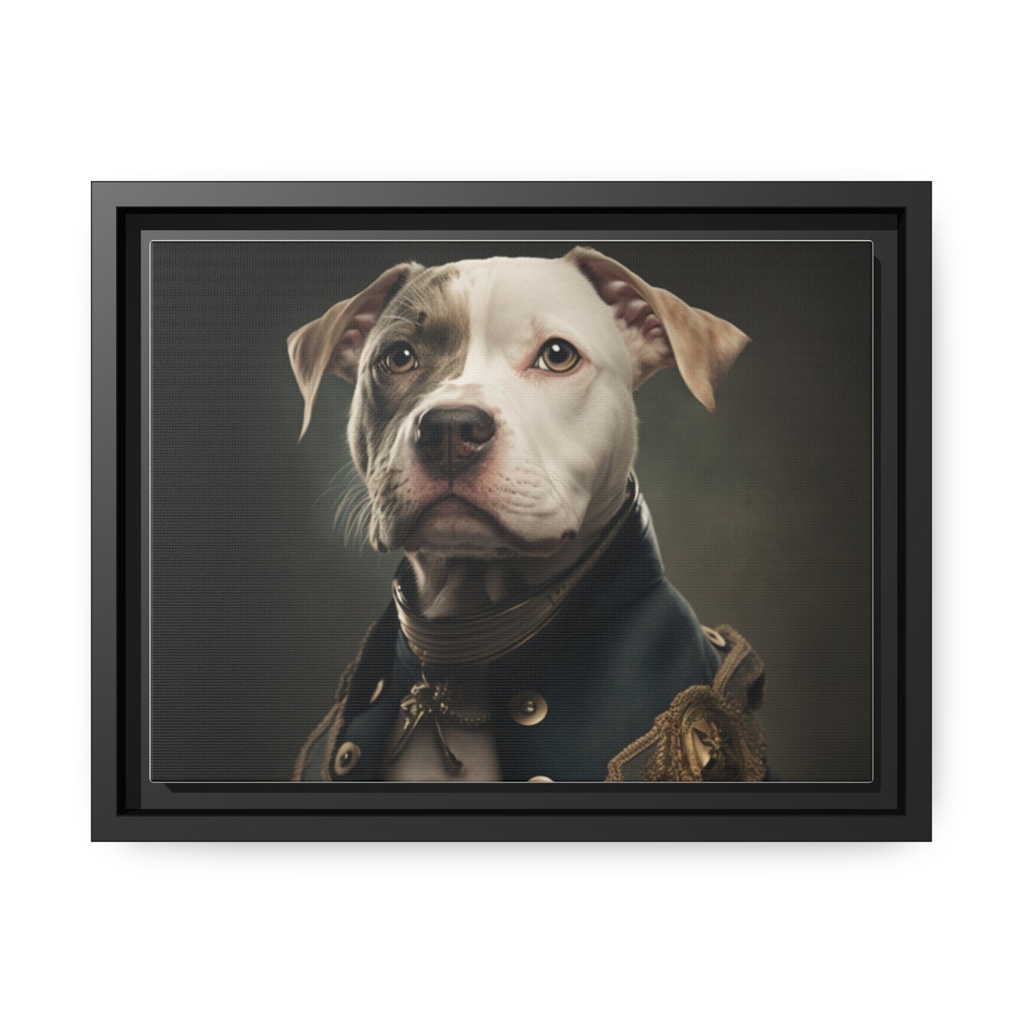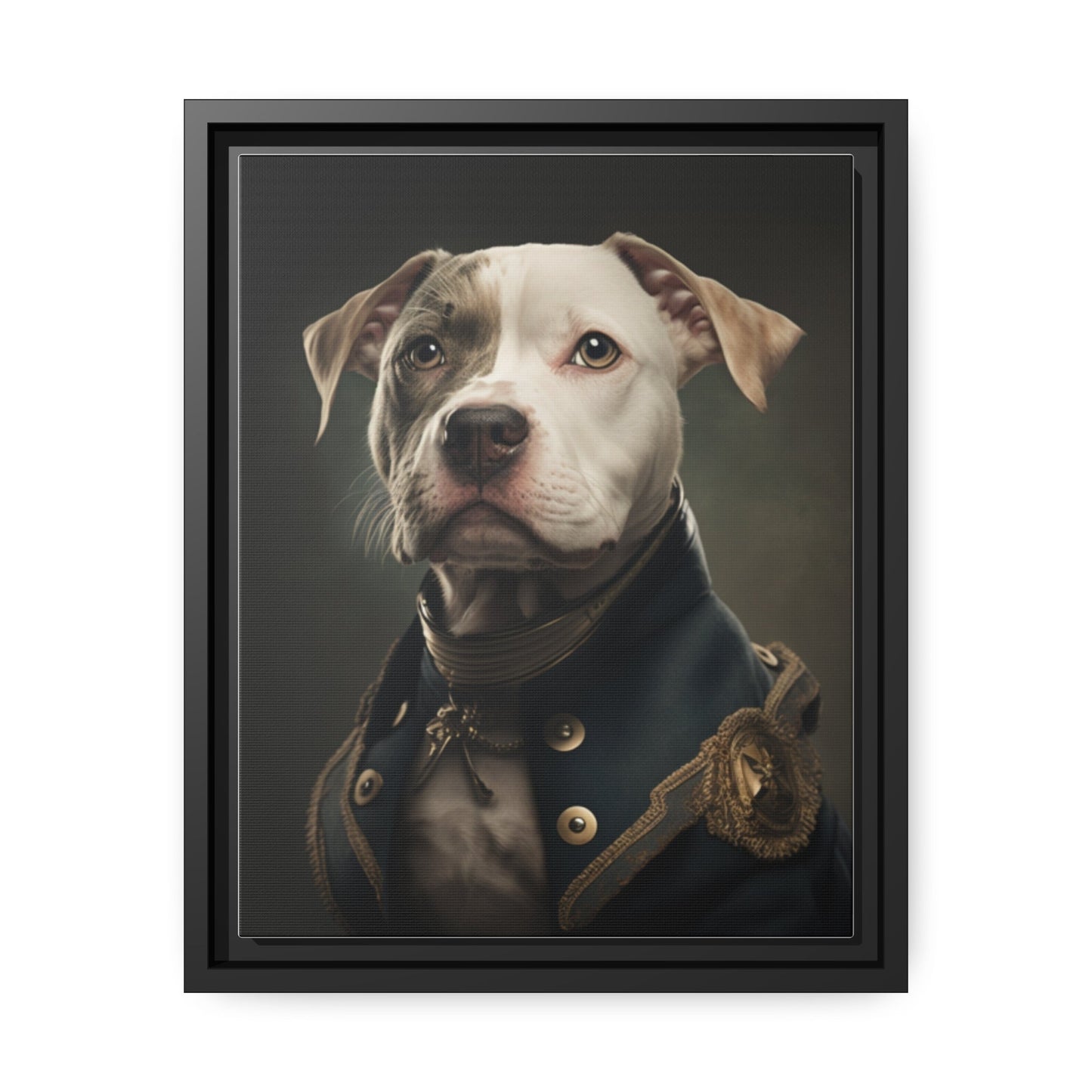 "Patriotic Pitbull: The Eye-Patch Wearing War Hero" Matte Canvas, Black Frame