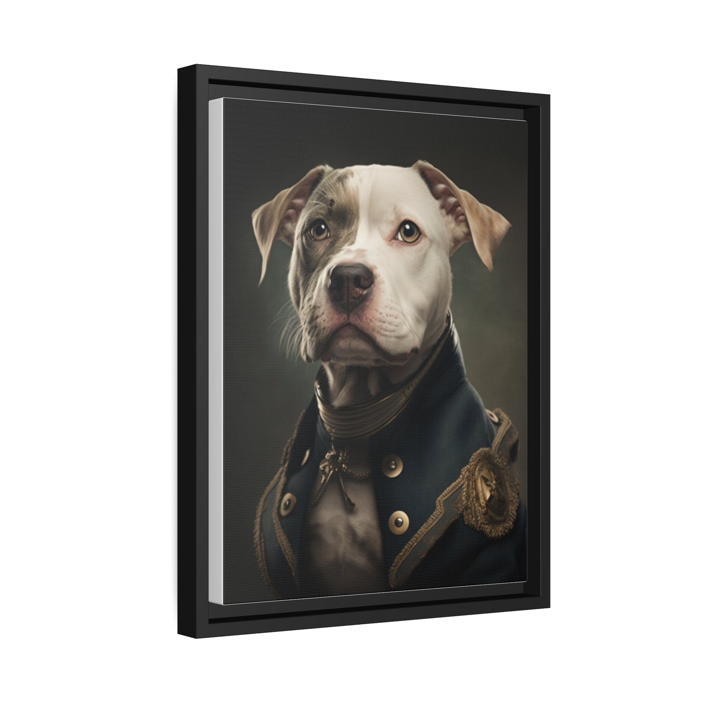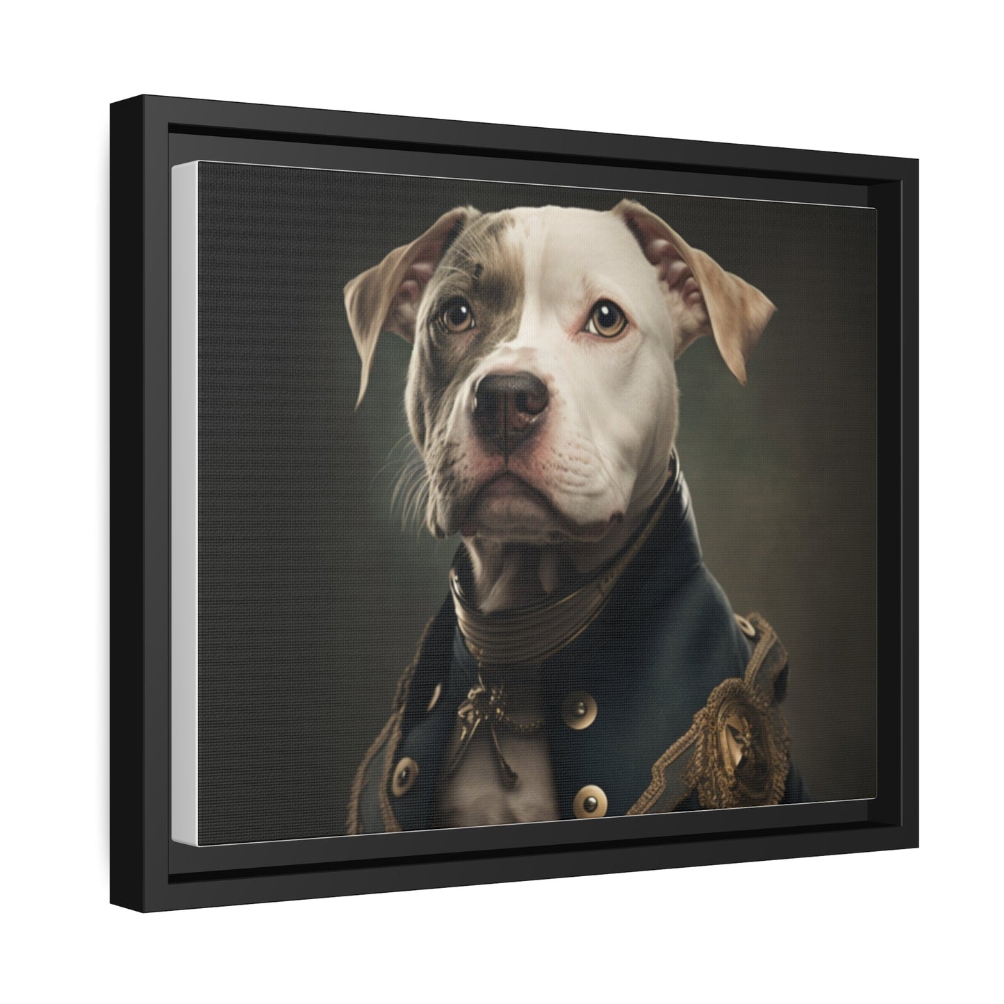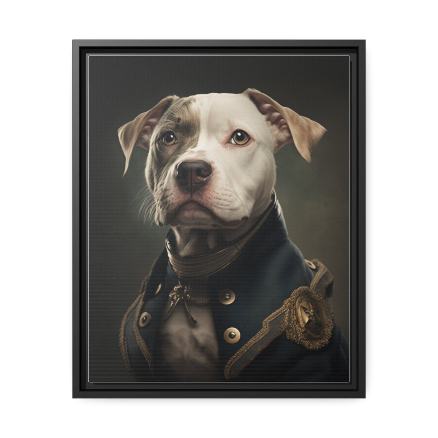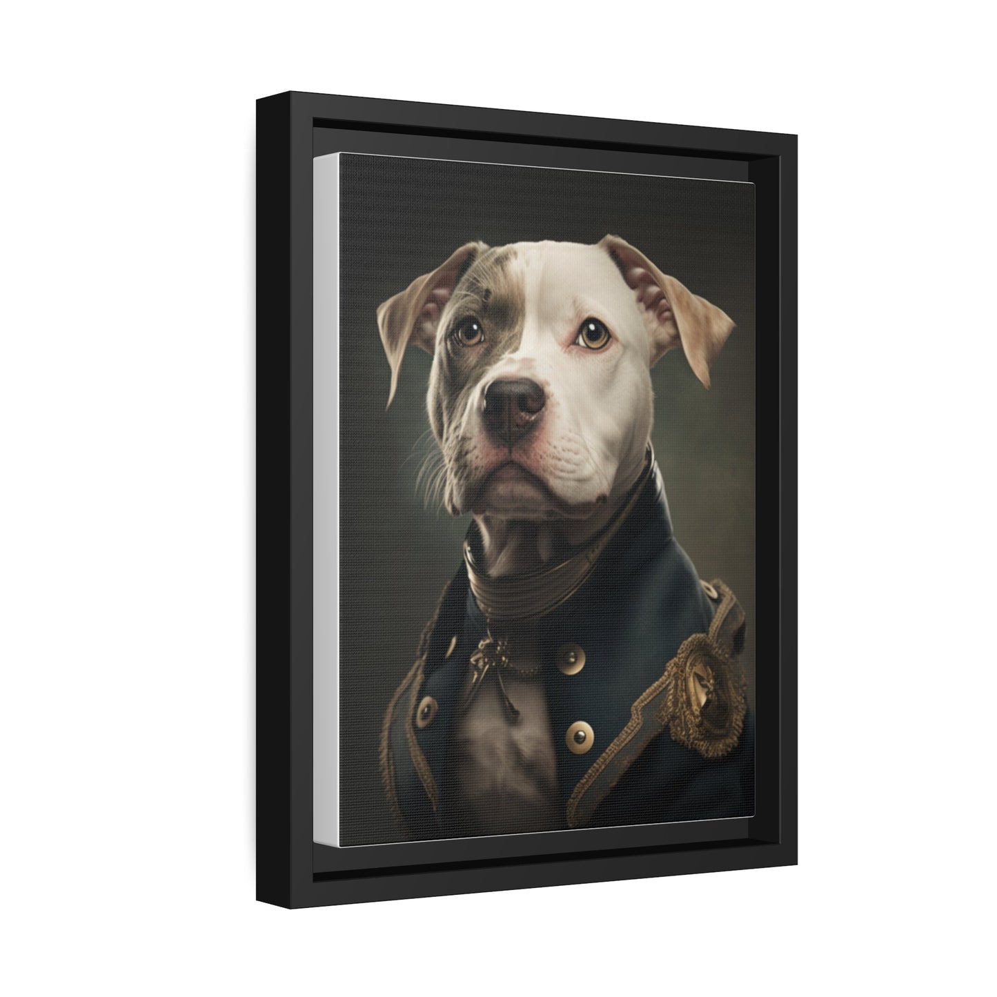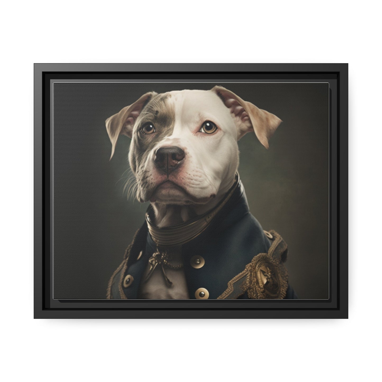 "Patriotic Pitbull: The Eye-Patch Wearing War Hero" Matte Canvas, Black Frame