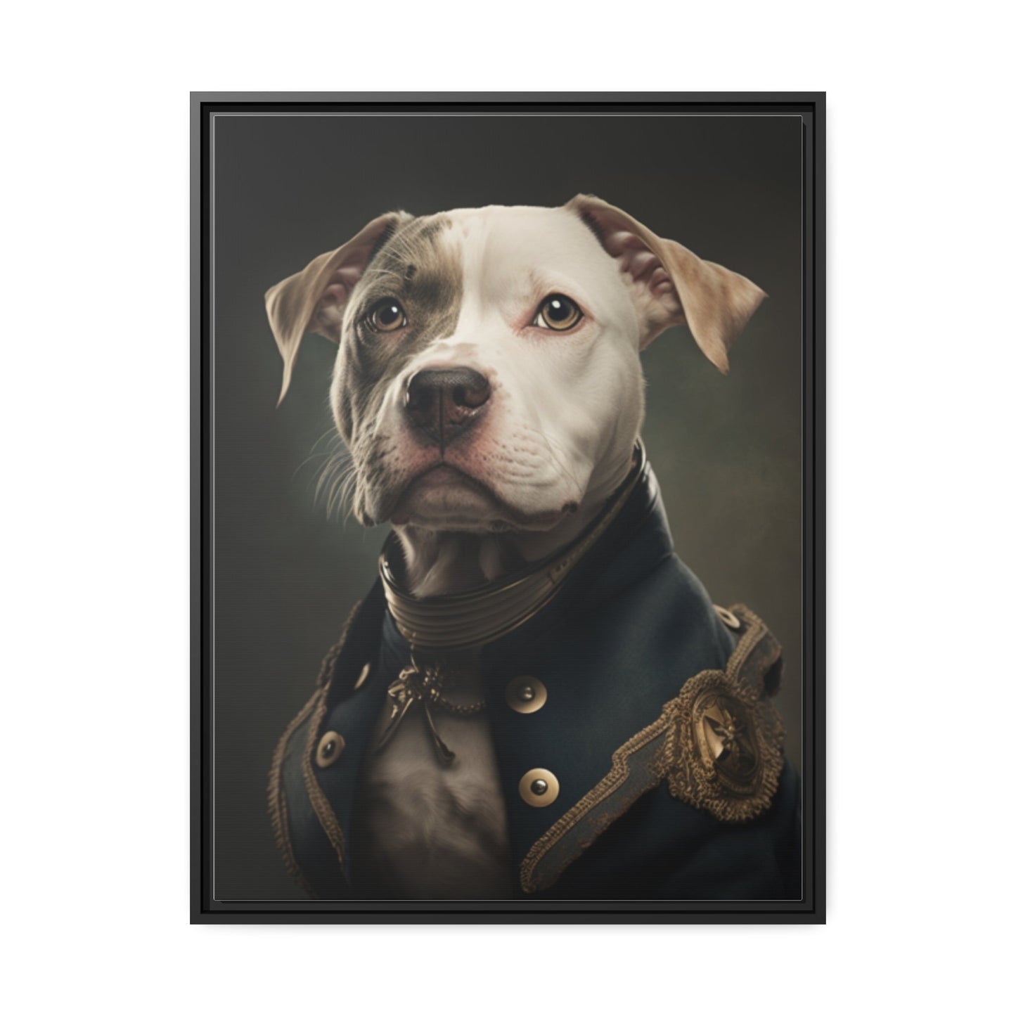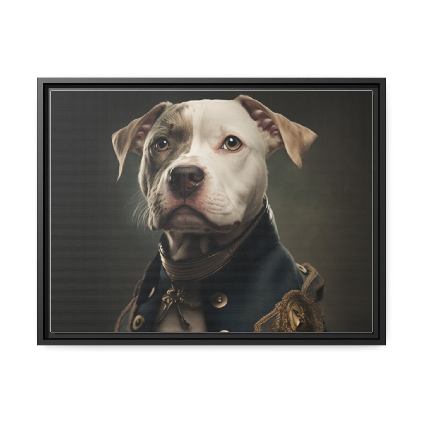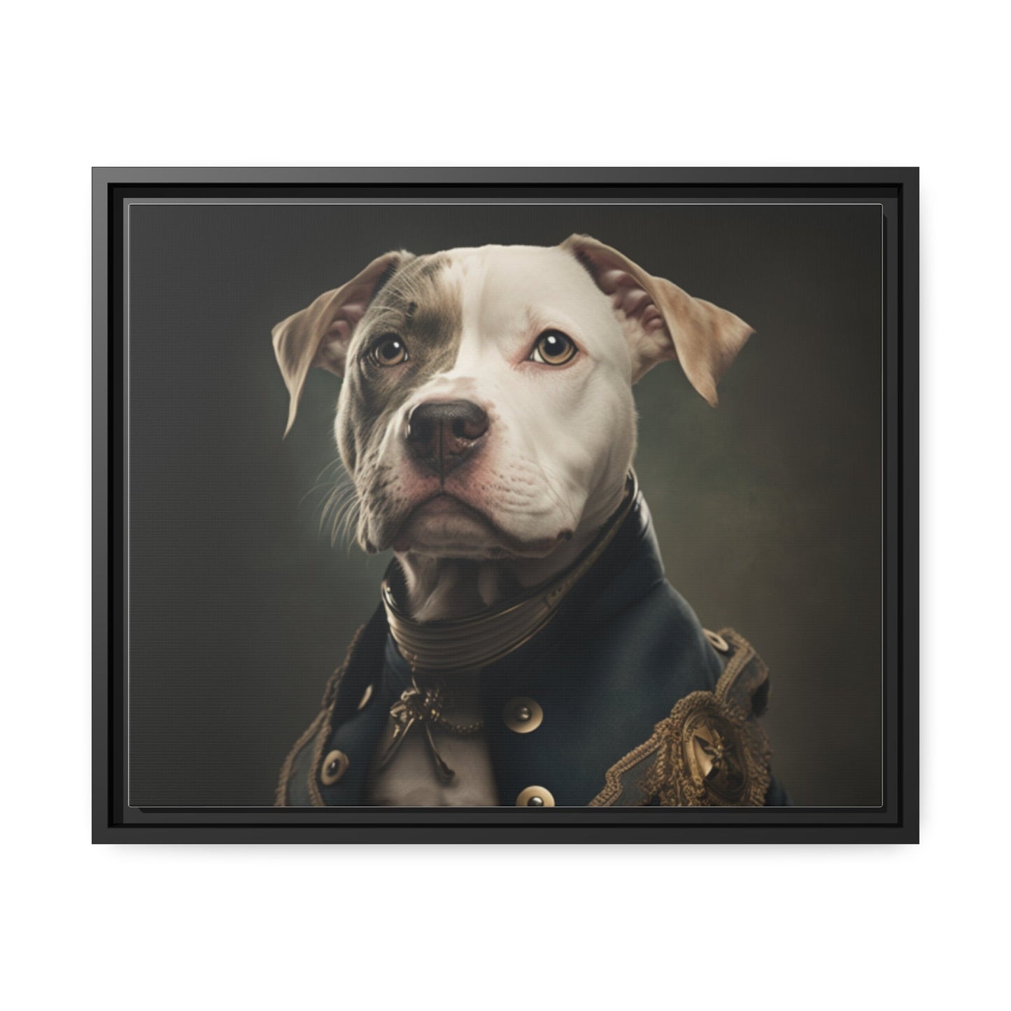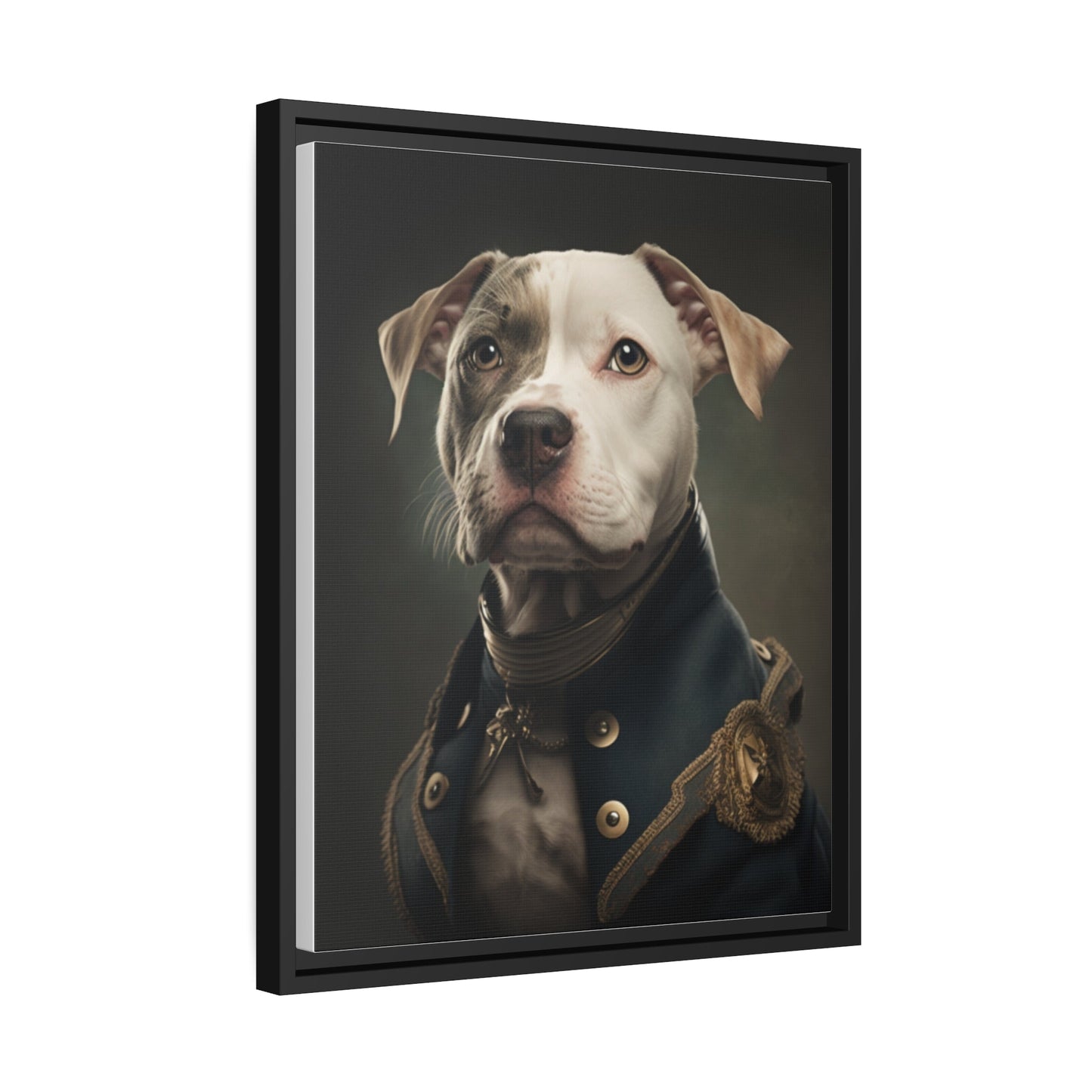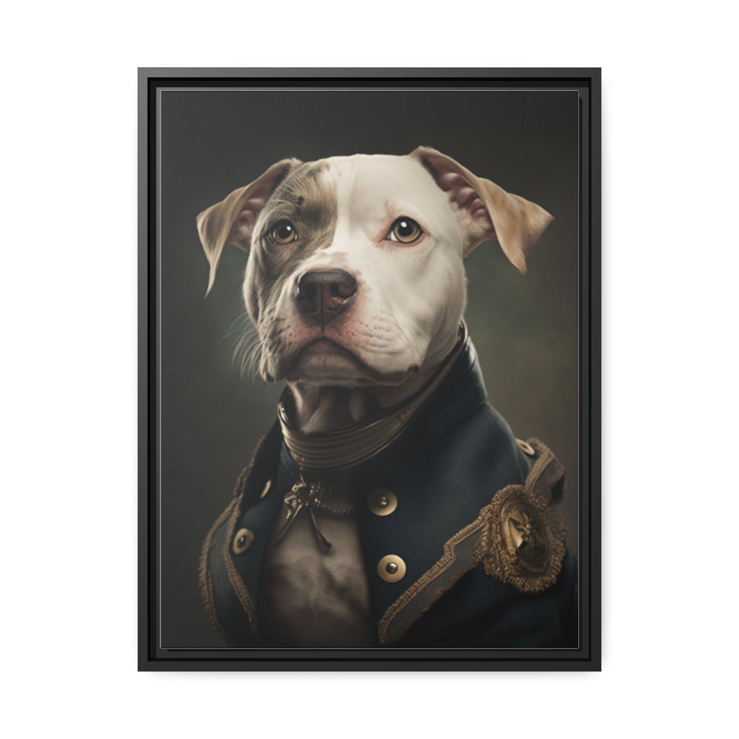 "Patriotic Pitbull: The Eye-Patch Wearing War Hero" Matte Canvas, Black Frame