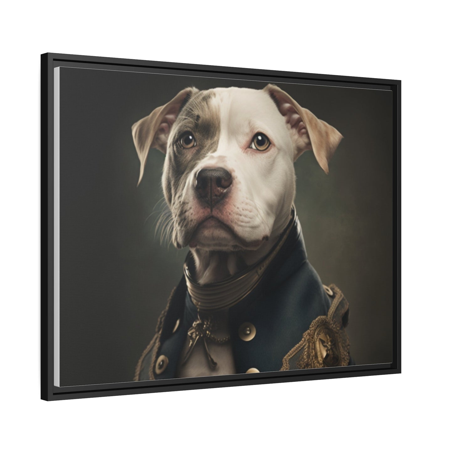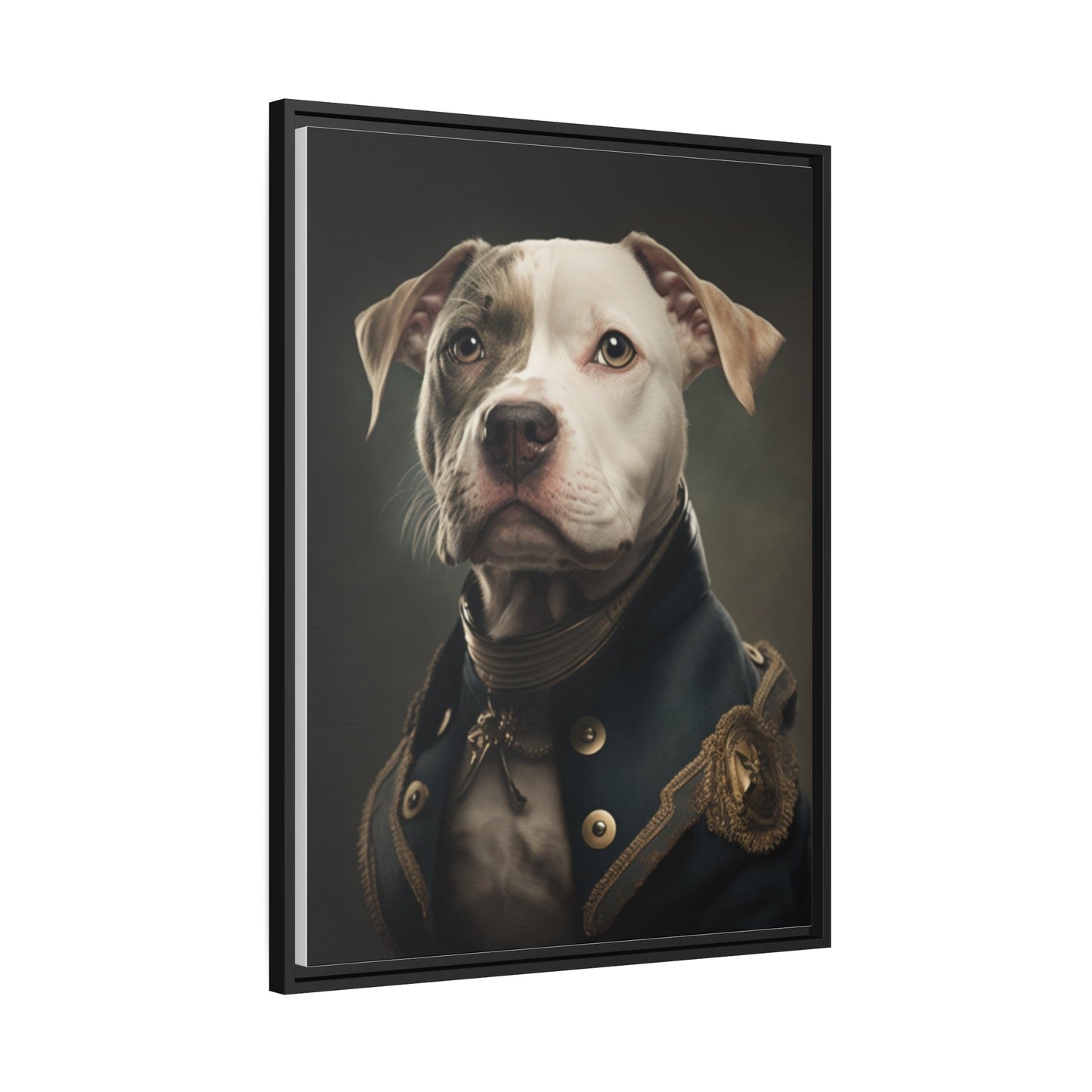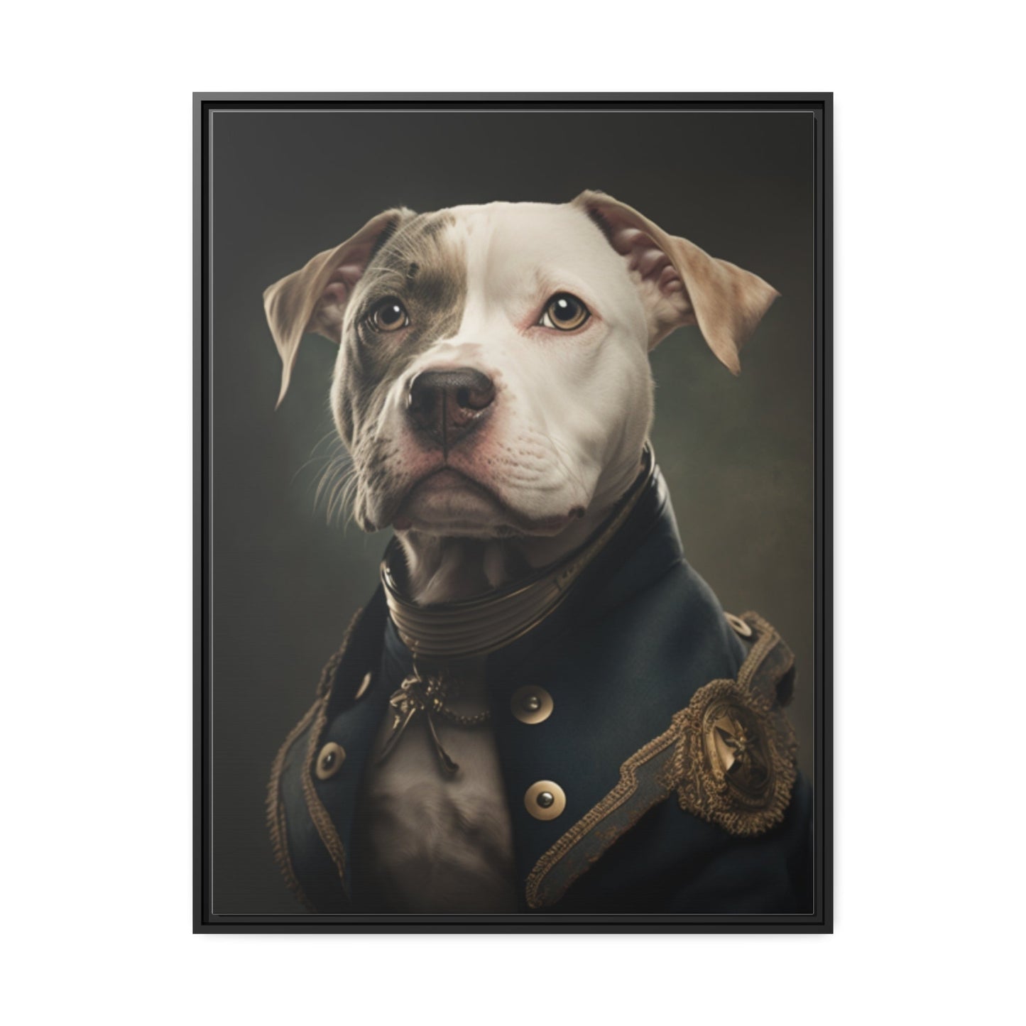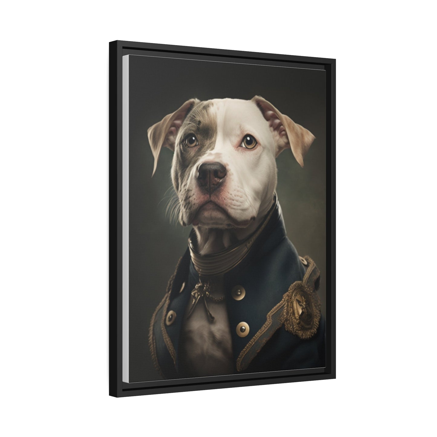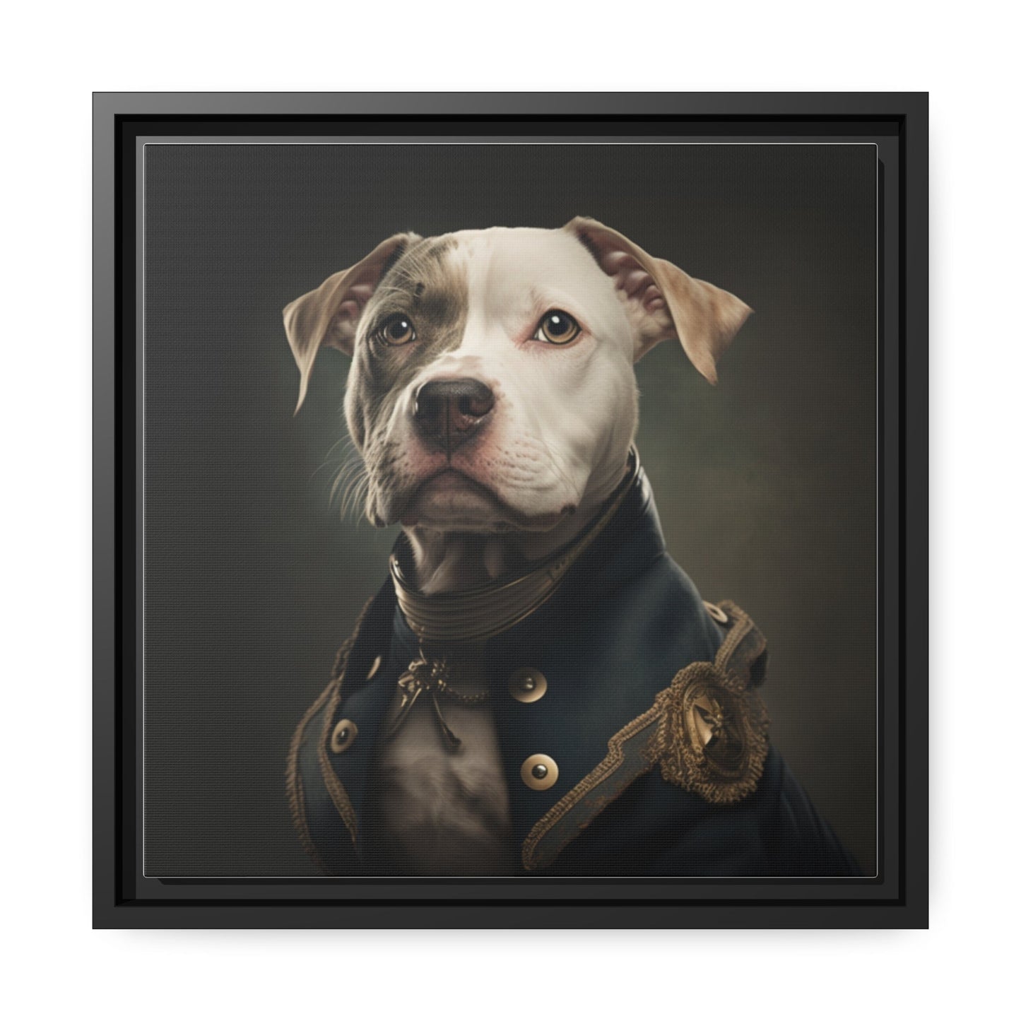 "Patriotic Pitbull: The Eye-Patch Wearing War Hero" Matte Canvas, Black Frame