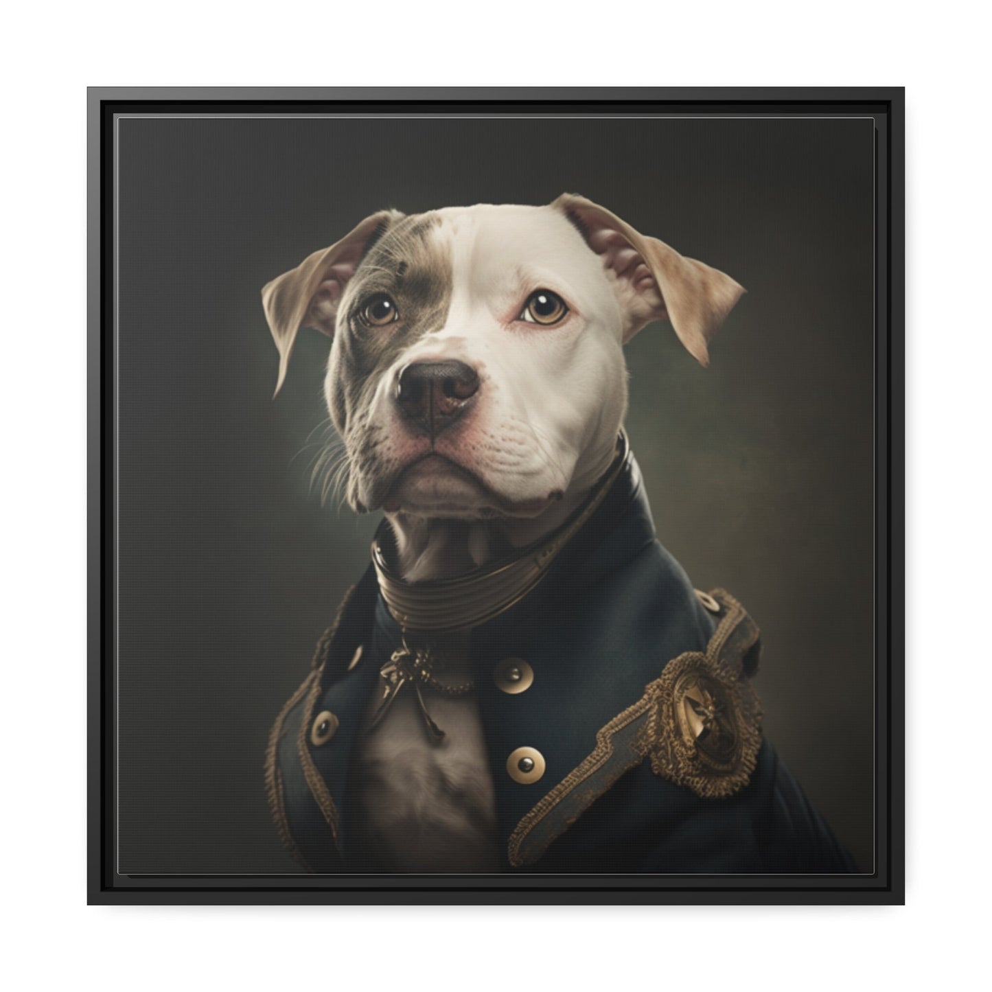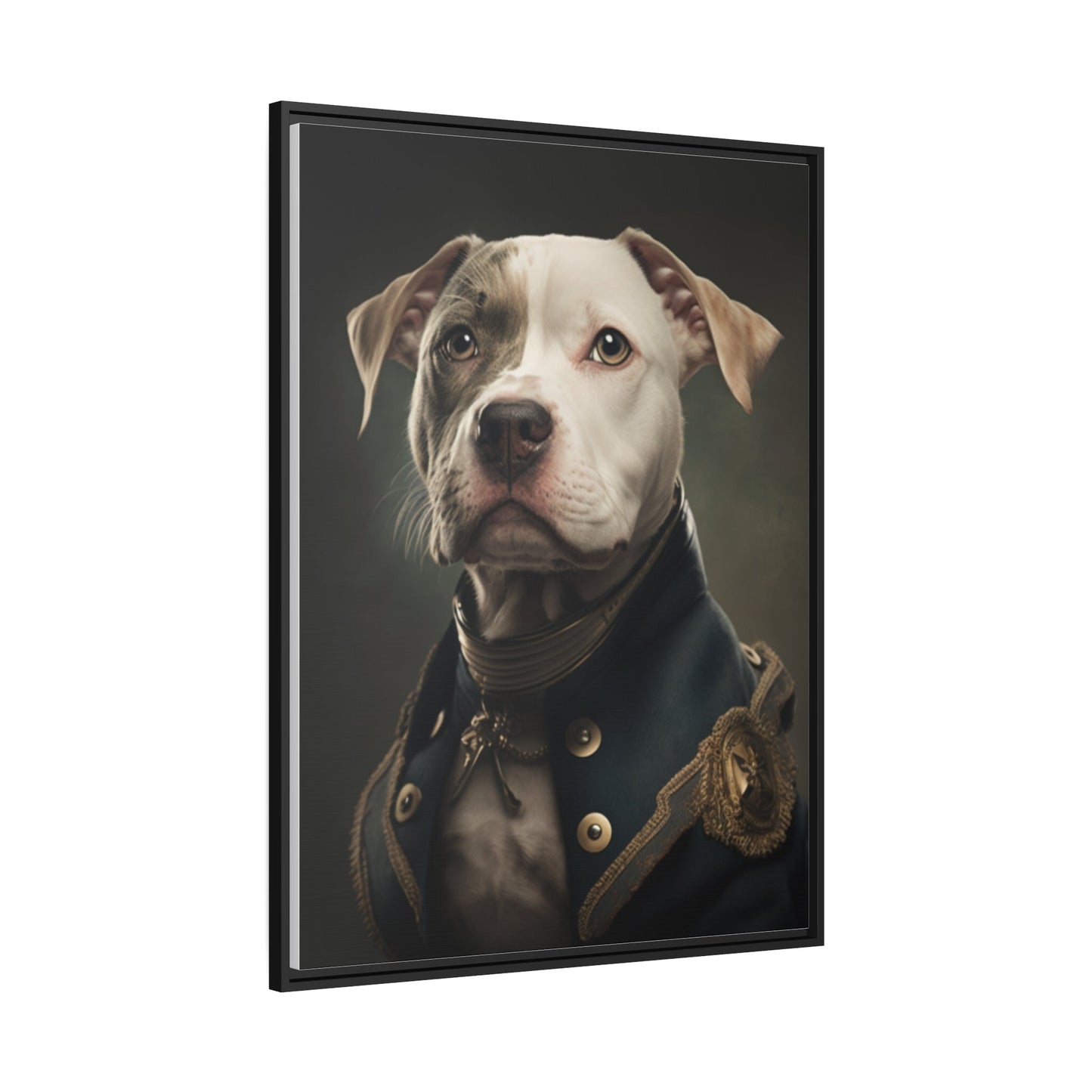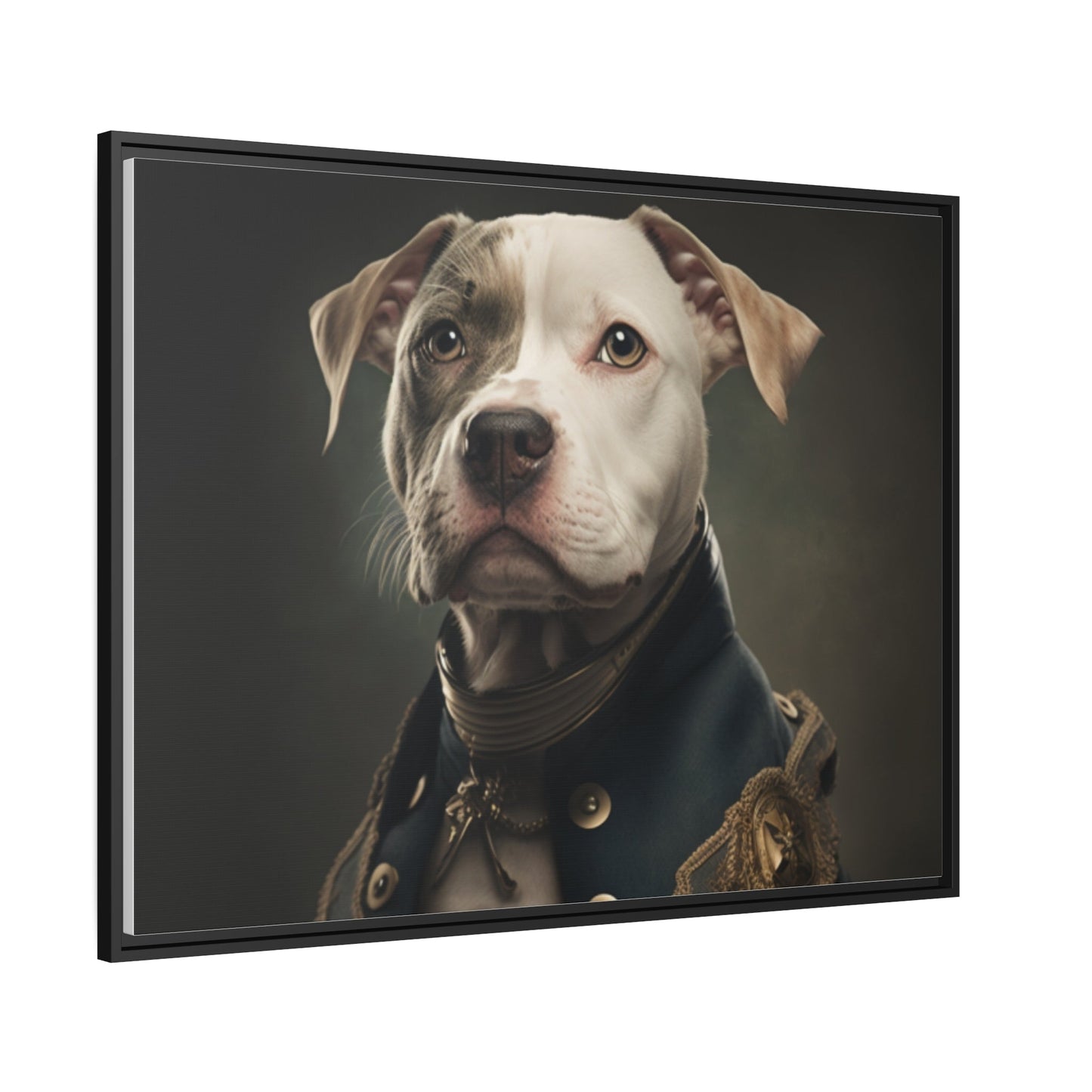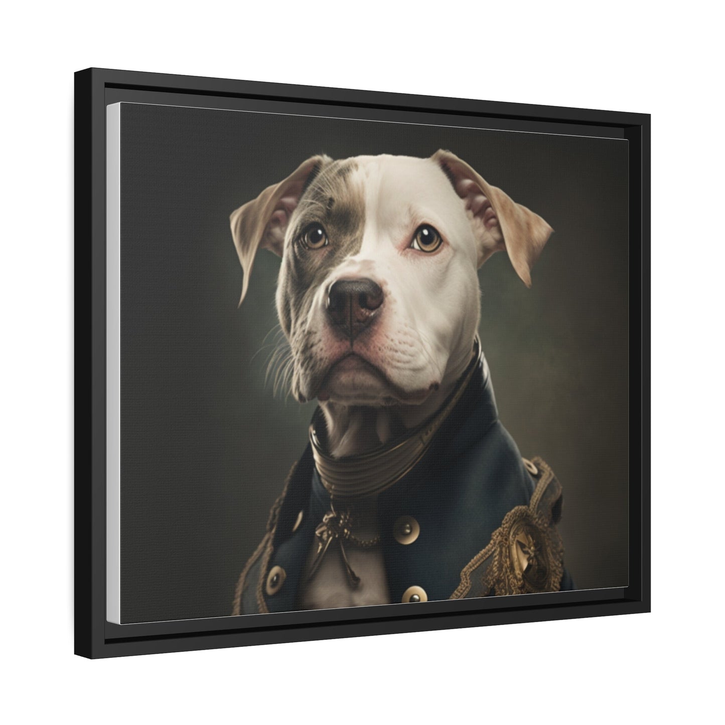 "Patriotic Pitbull: The Eye-Patch Wearing War Hero" Matte Canvas, Black Frame
