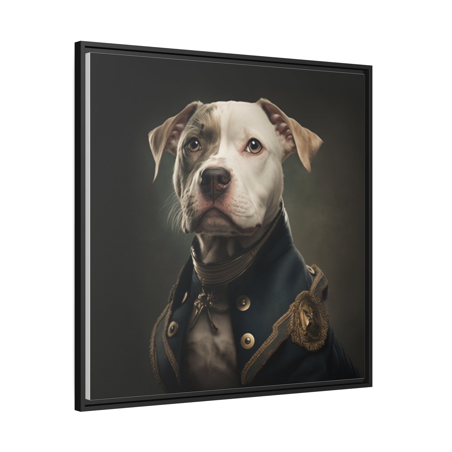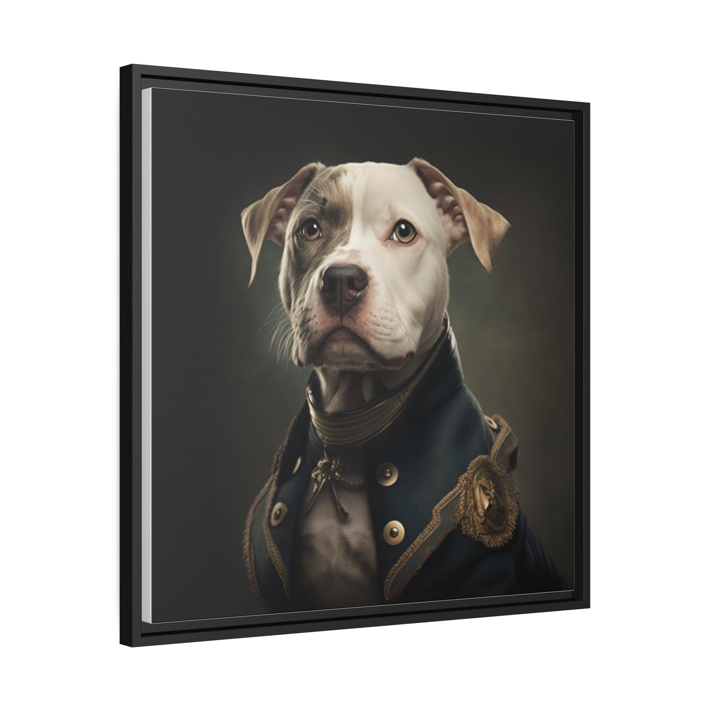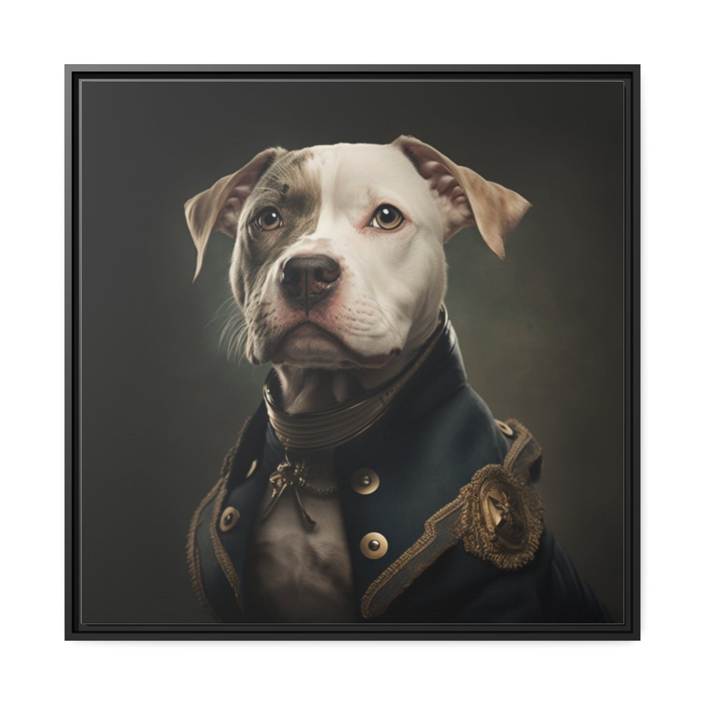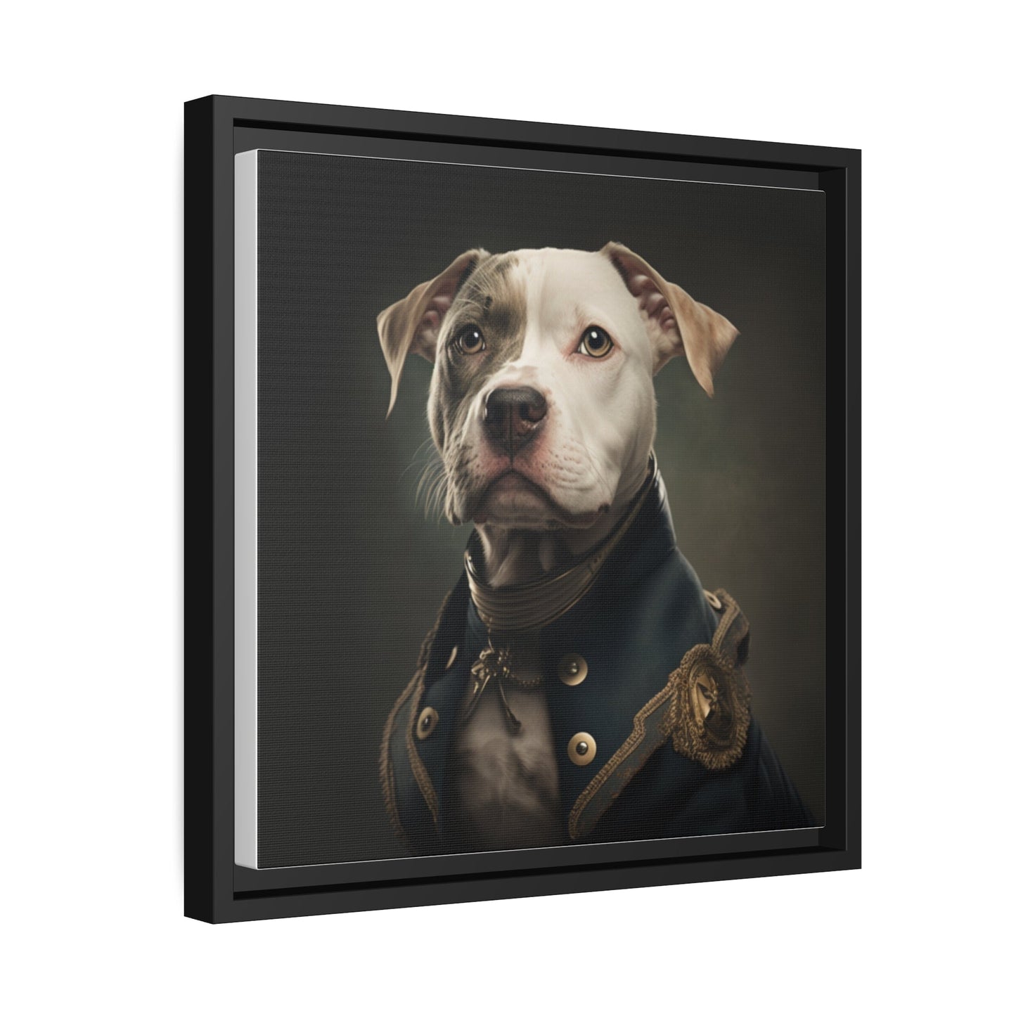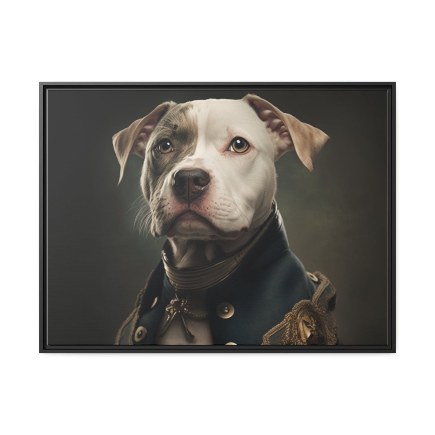 "Patriotic Pitbull: The Eye-Patch Wearing War Hero" Matte Canvas, Black Frame
