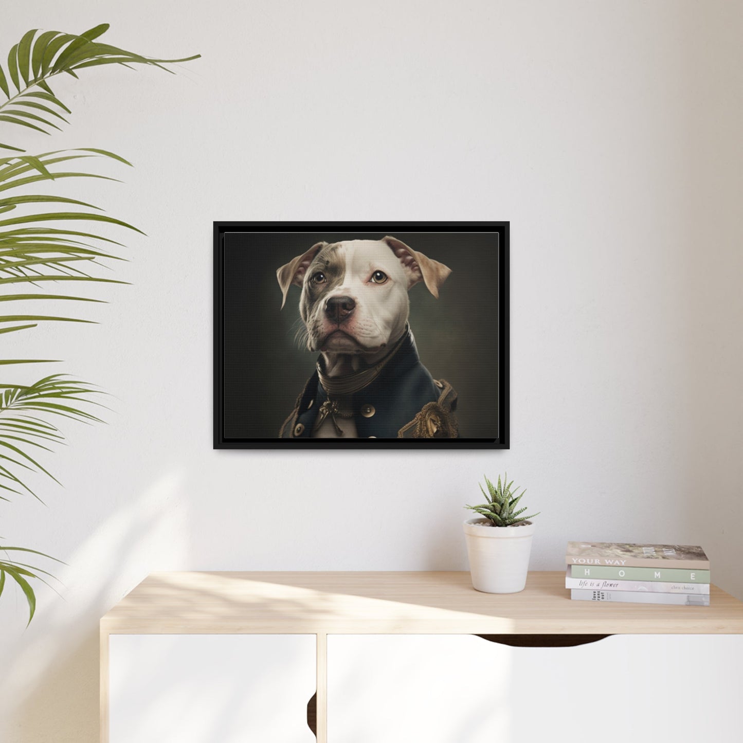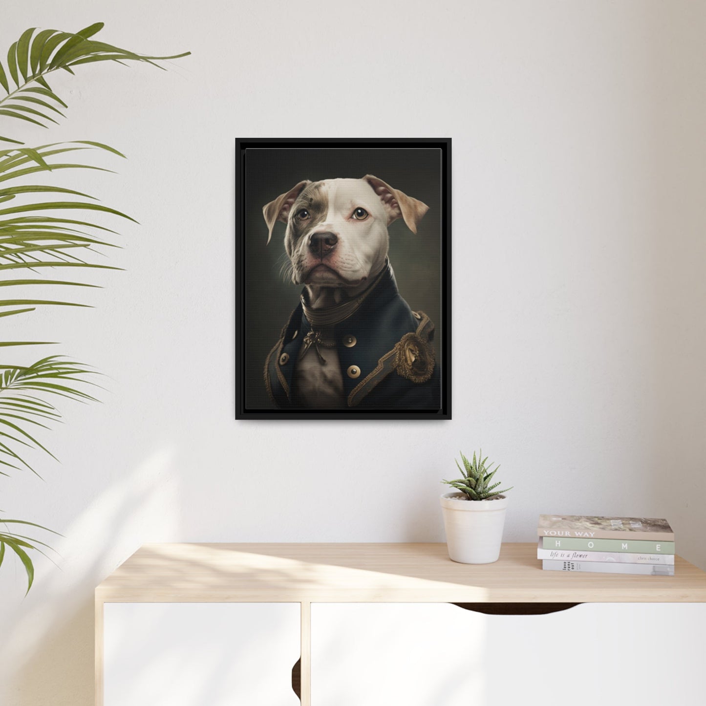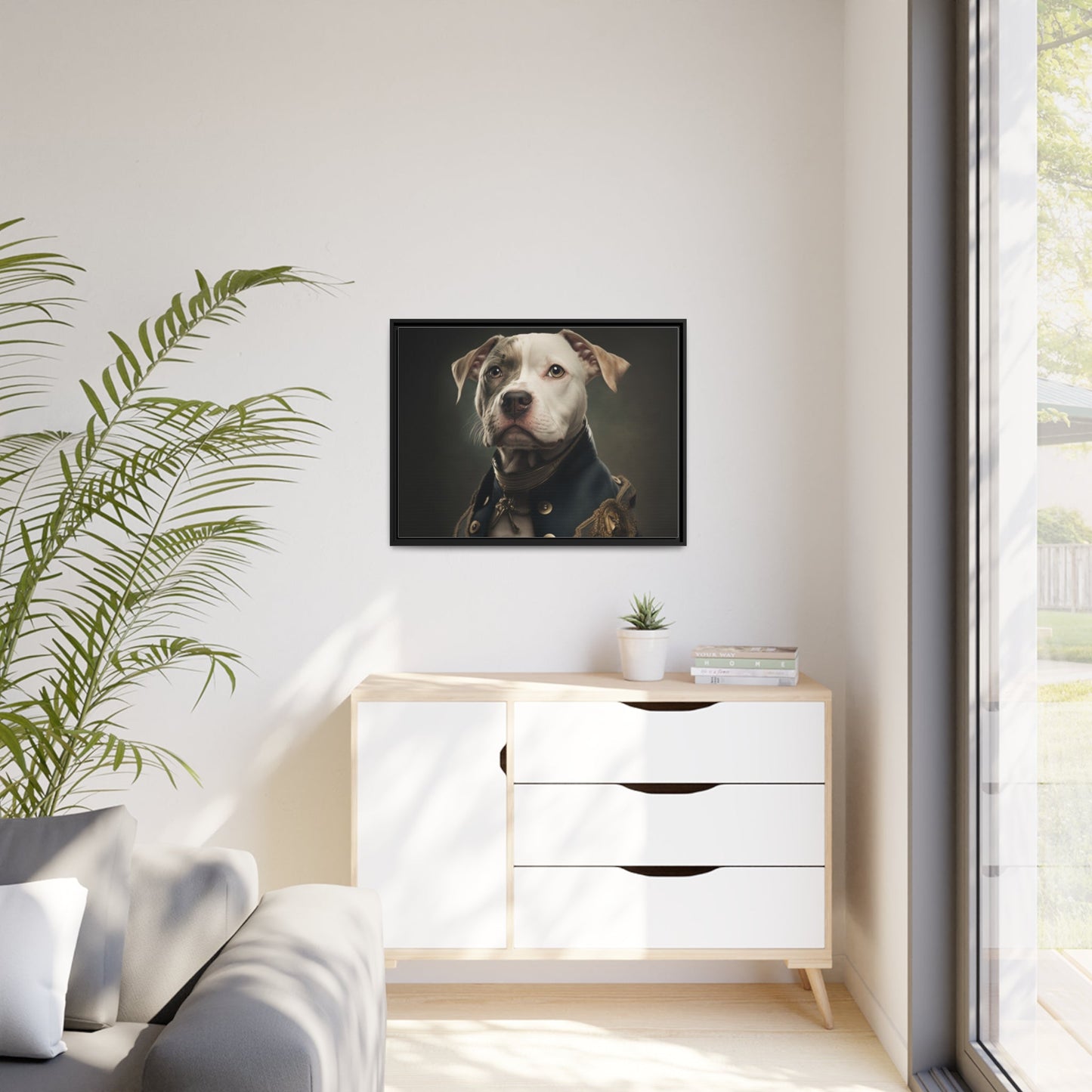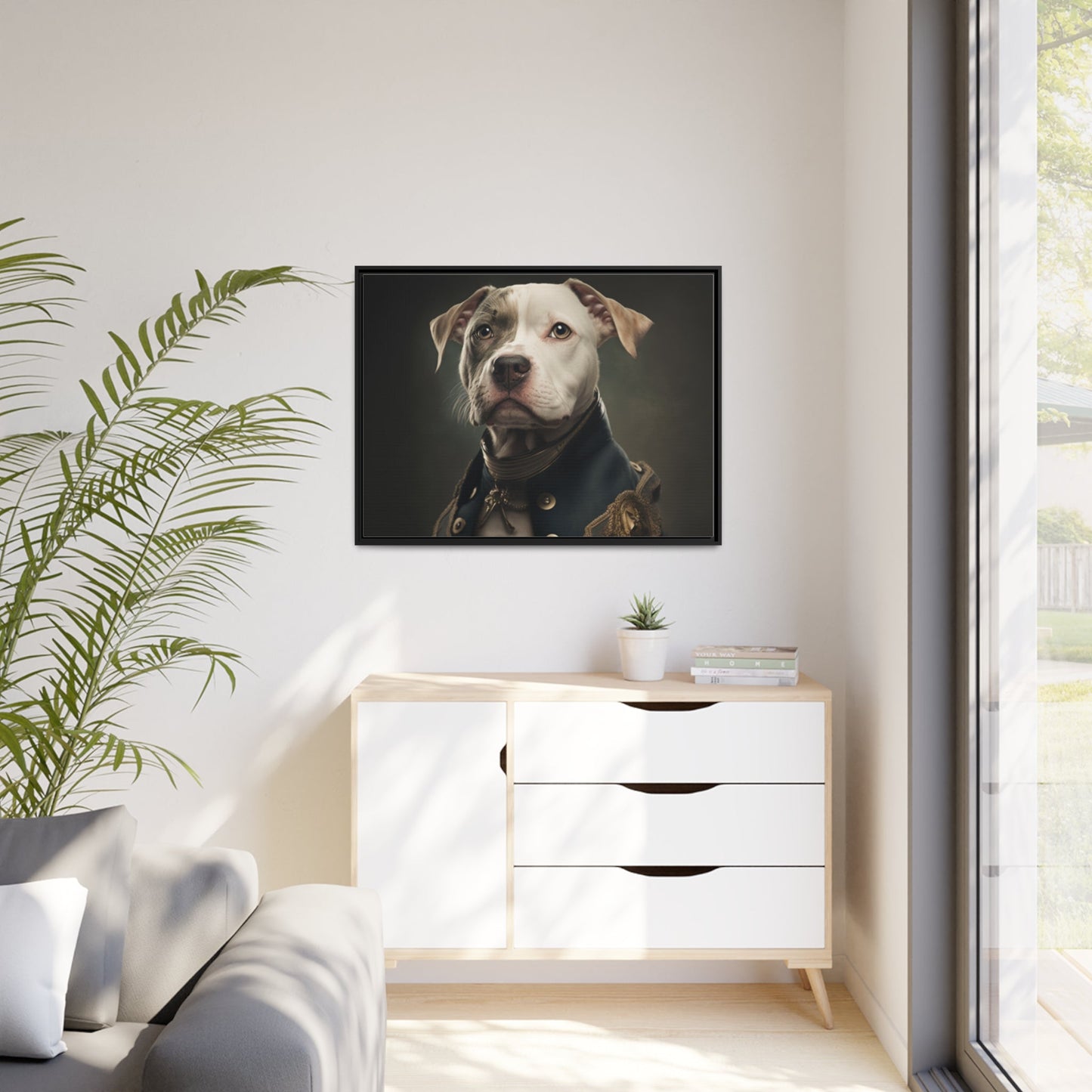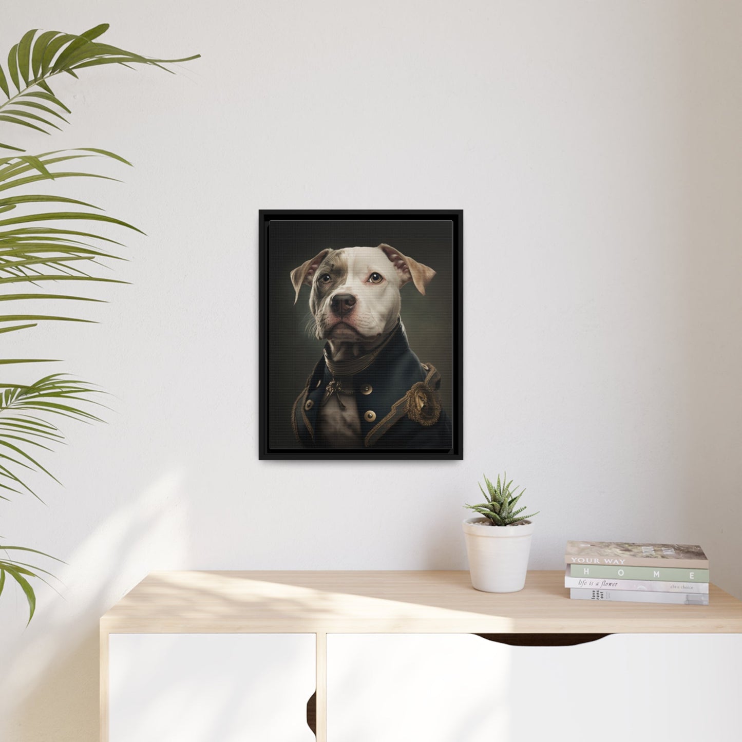 "Patriotic Pitbull: The Eye-Patch Wearing War Hero" Matte Canvas, Black Frame