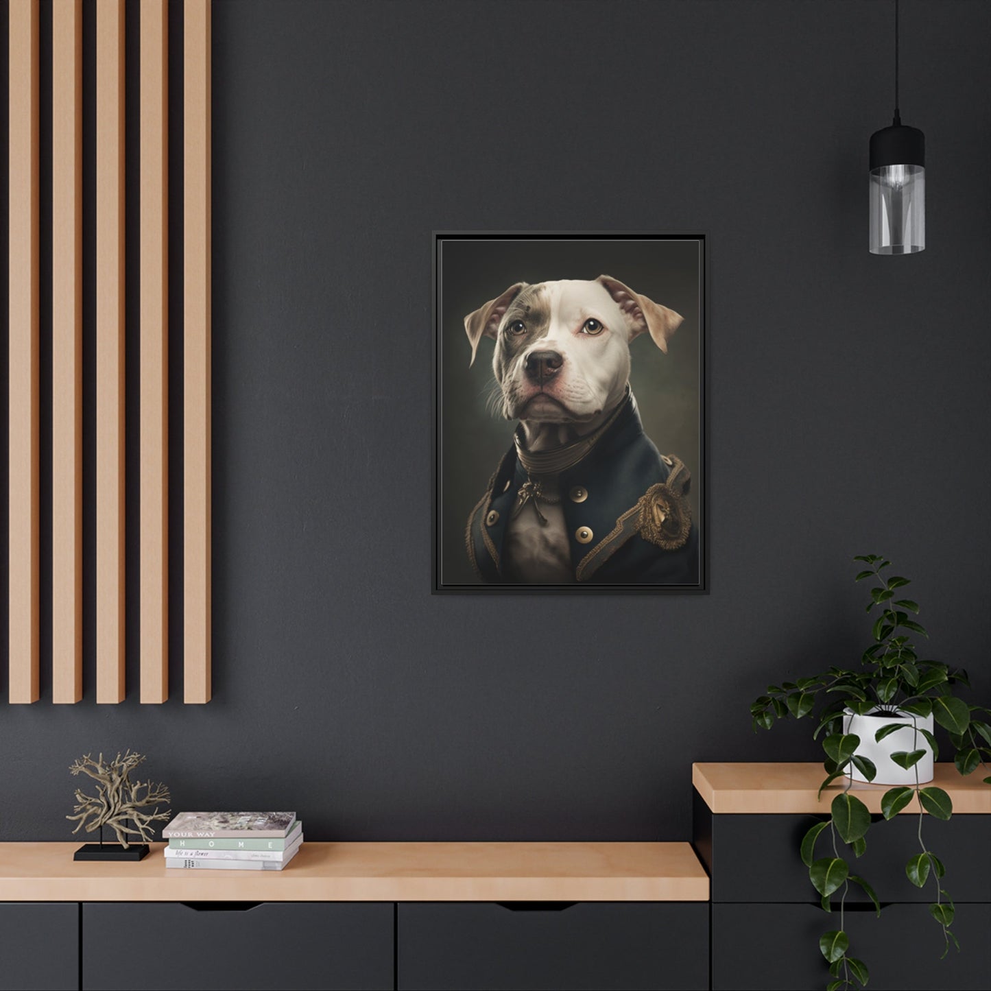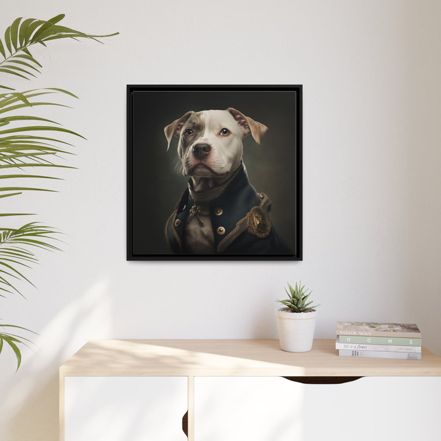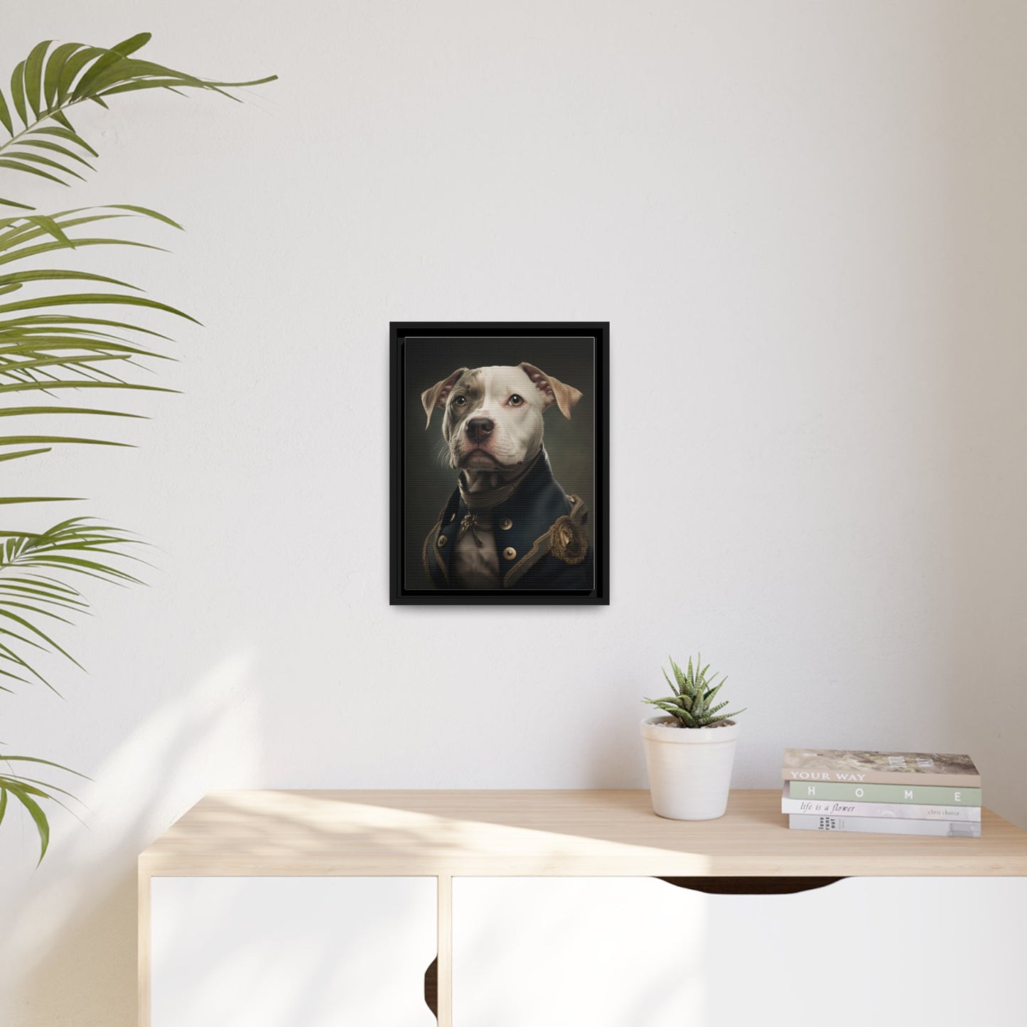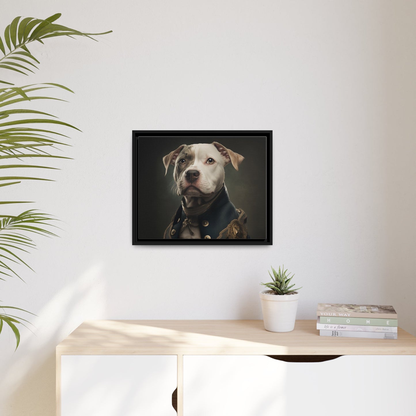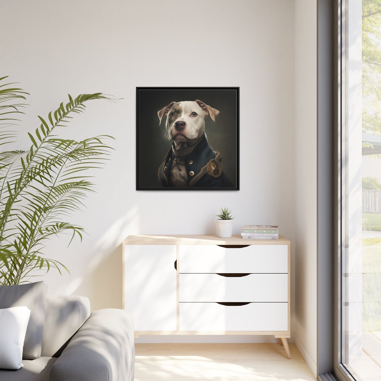 "Patriotic Pitbull: The Eye-Patch Wearing War Hero" Matte Canvas, Black Frame