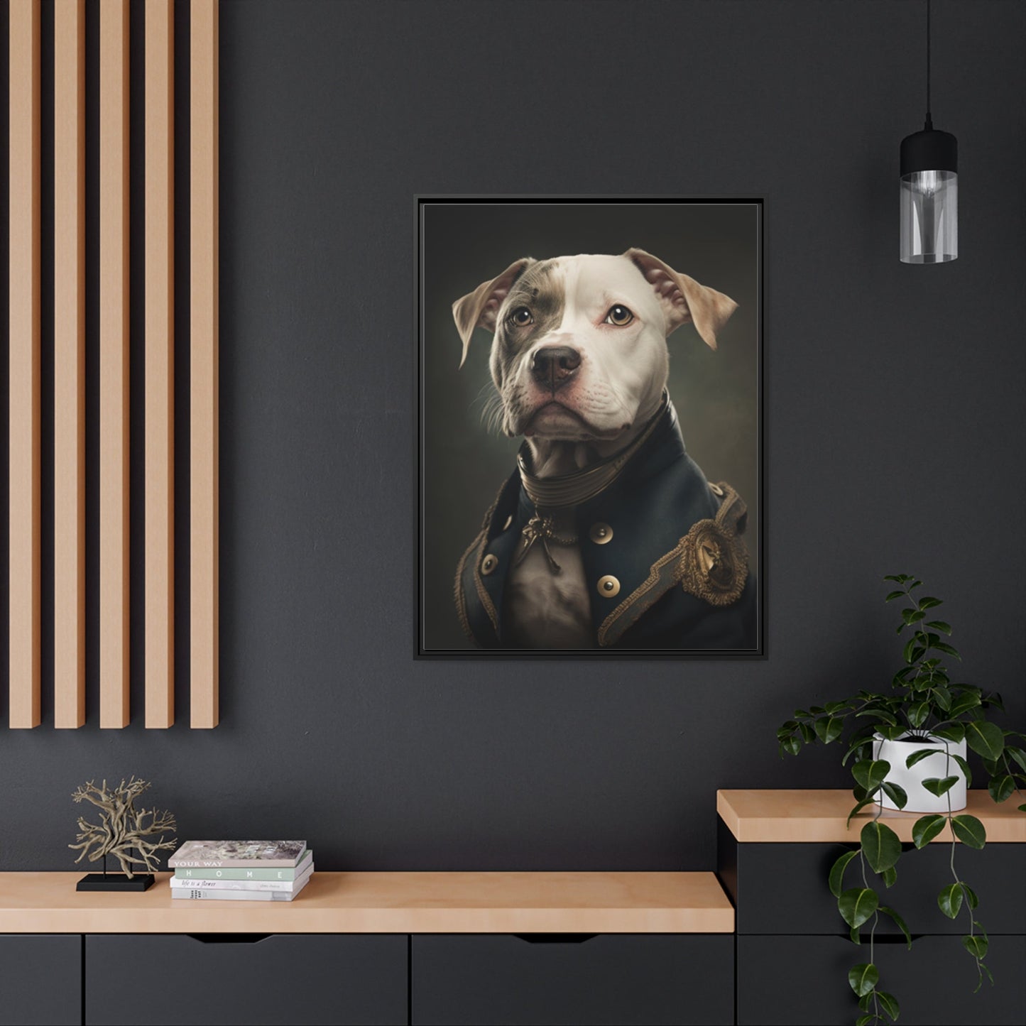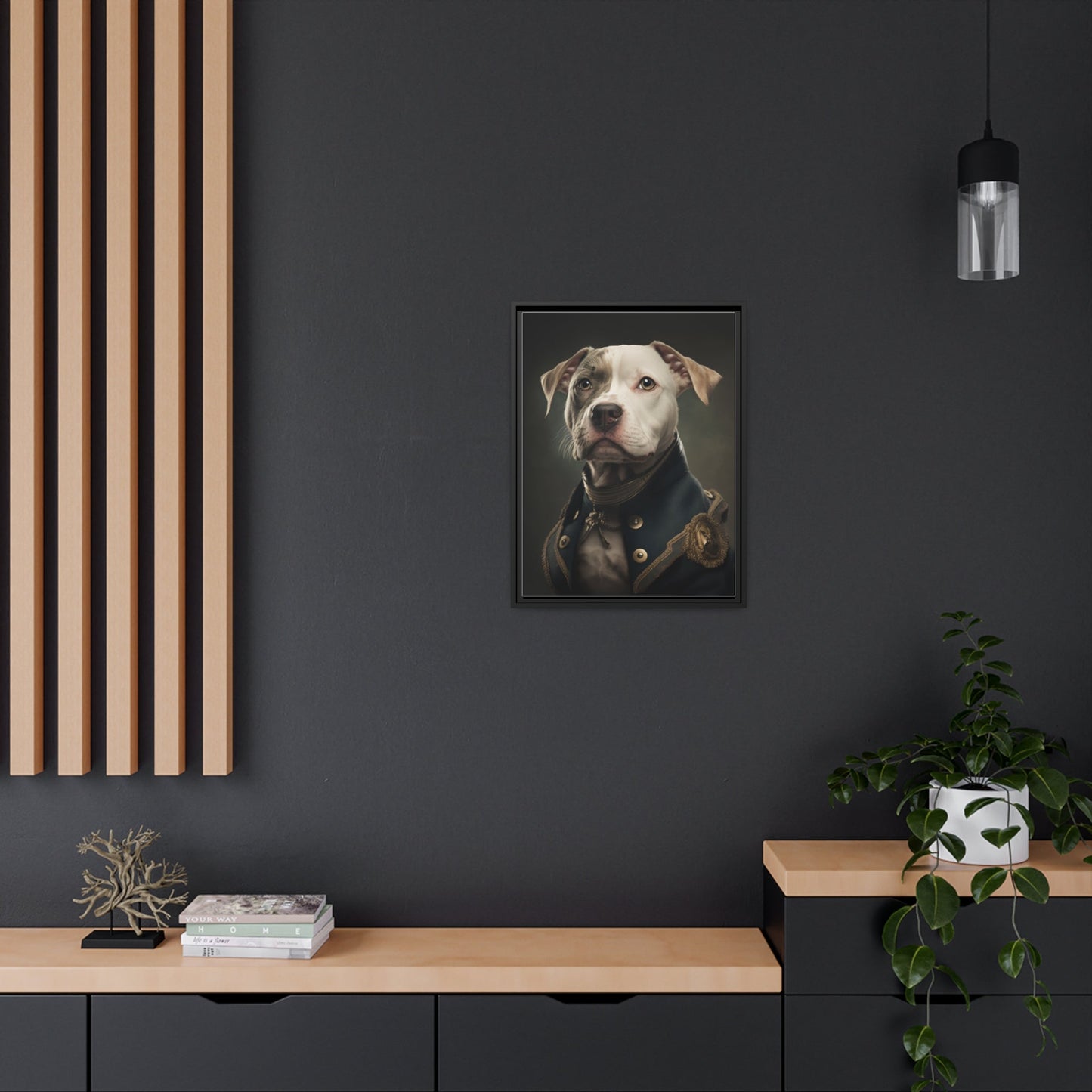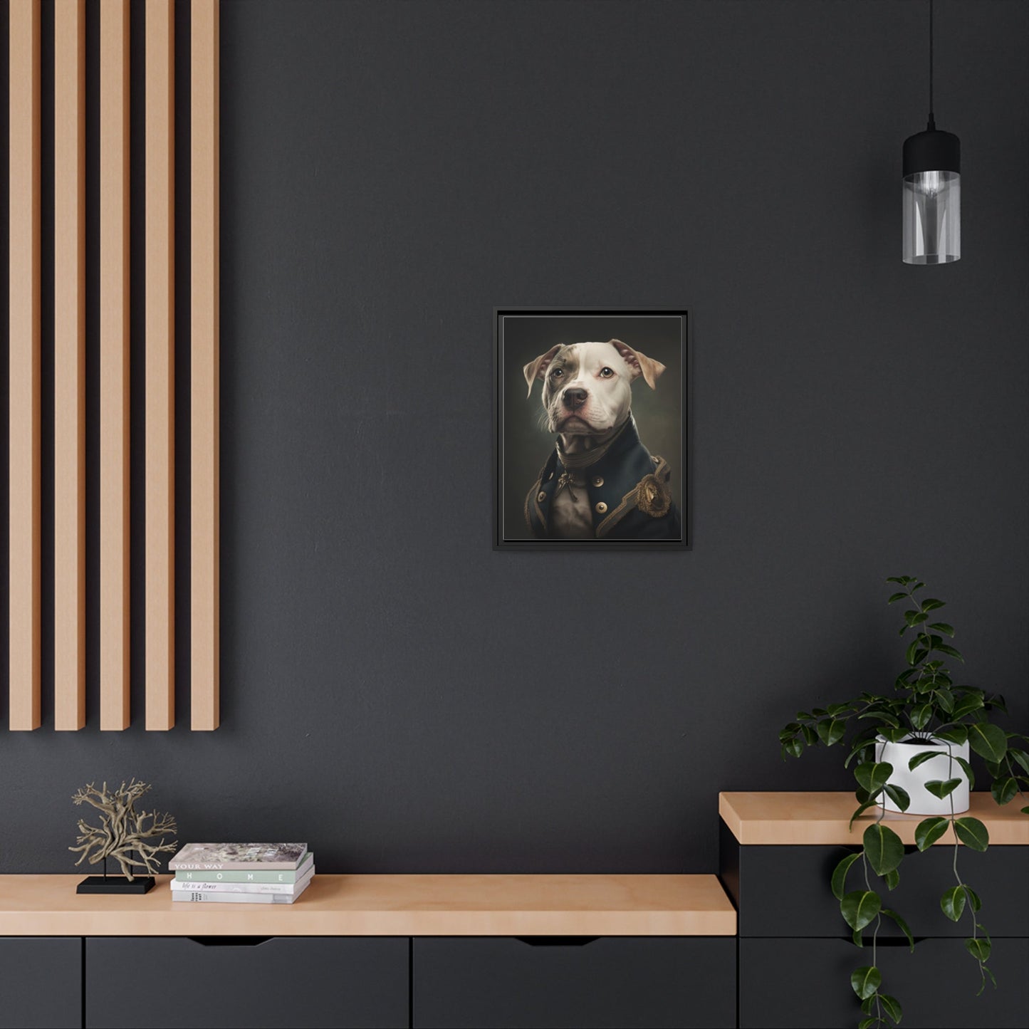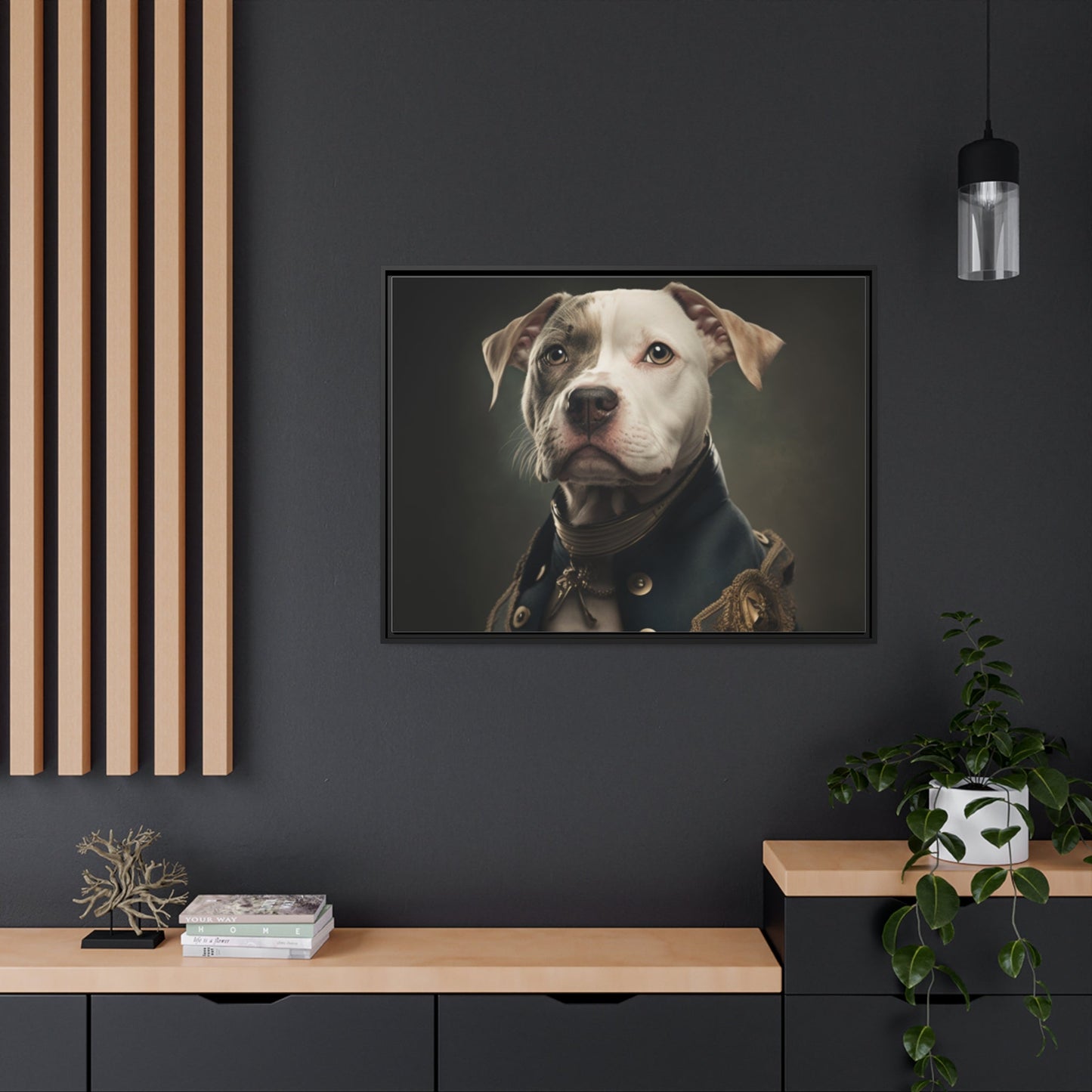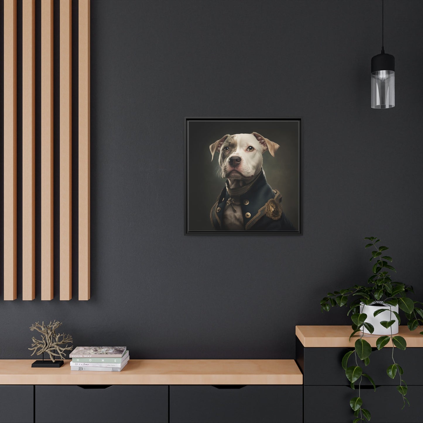 "Patriotic Pitbull: The Eye-Patch Wearing War Hero" Matte Canvas, Black Frame