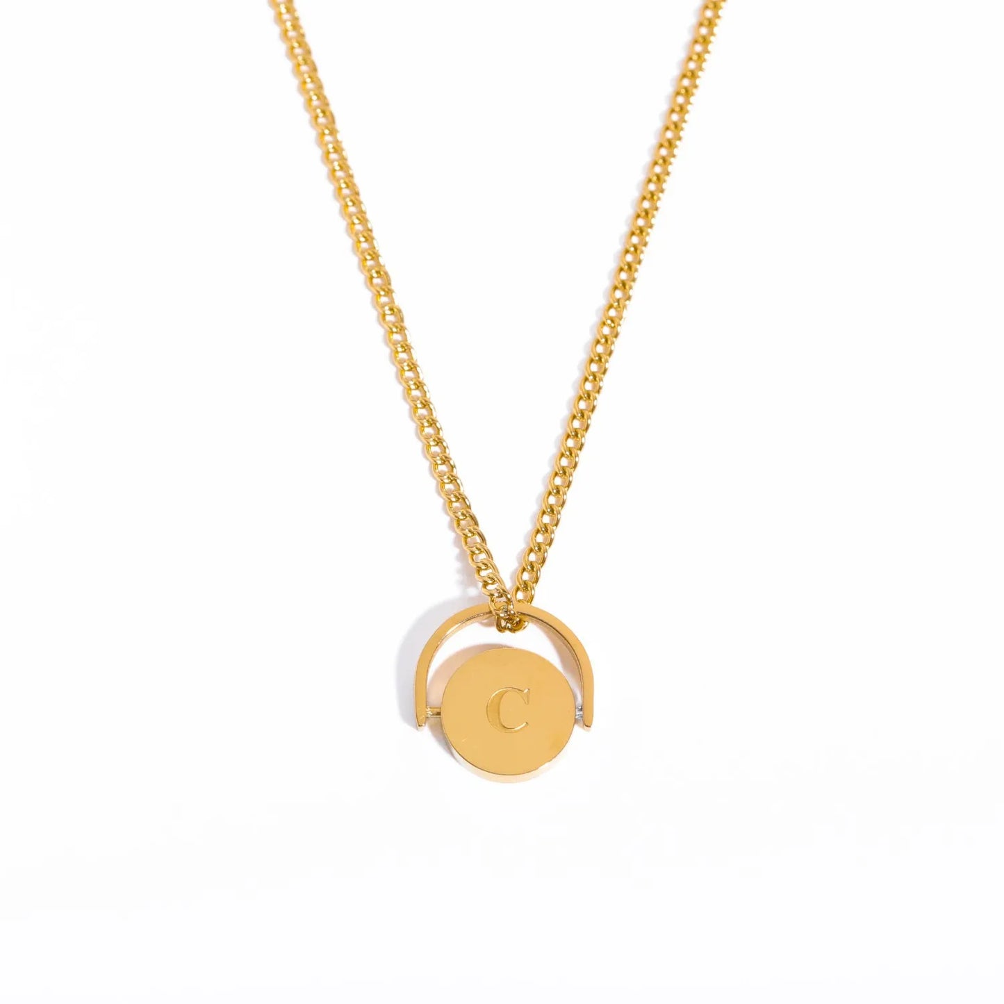 Stainless Steel 26 Initial Letters Necklace for Women Gold Plated Oval Pendant Necklace Wedding Party Jewelry