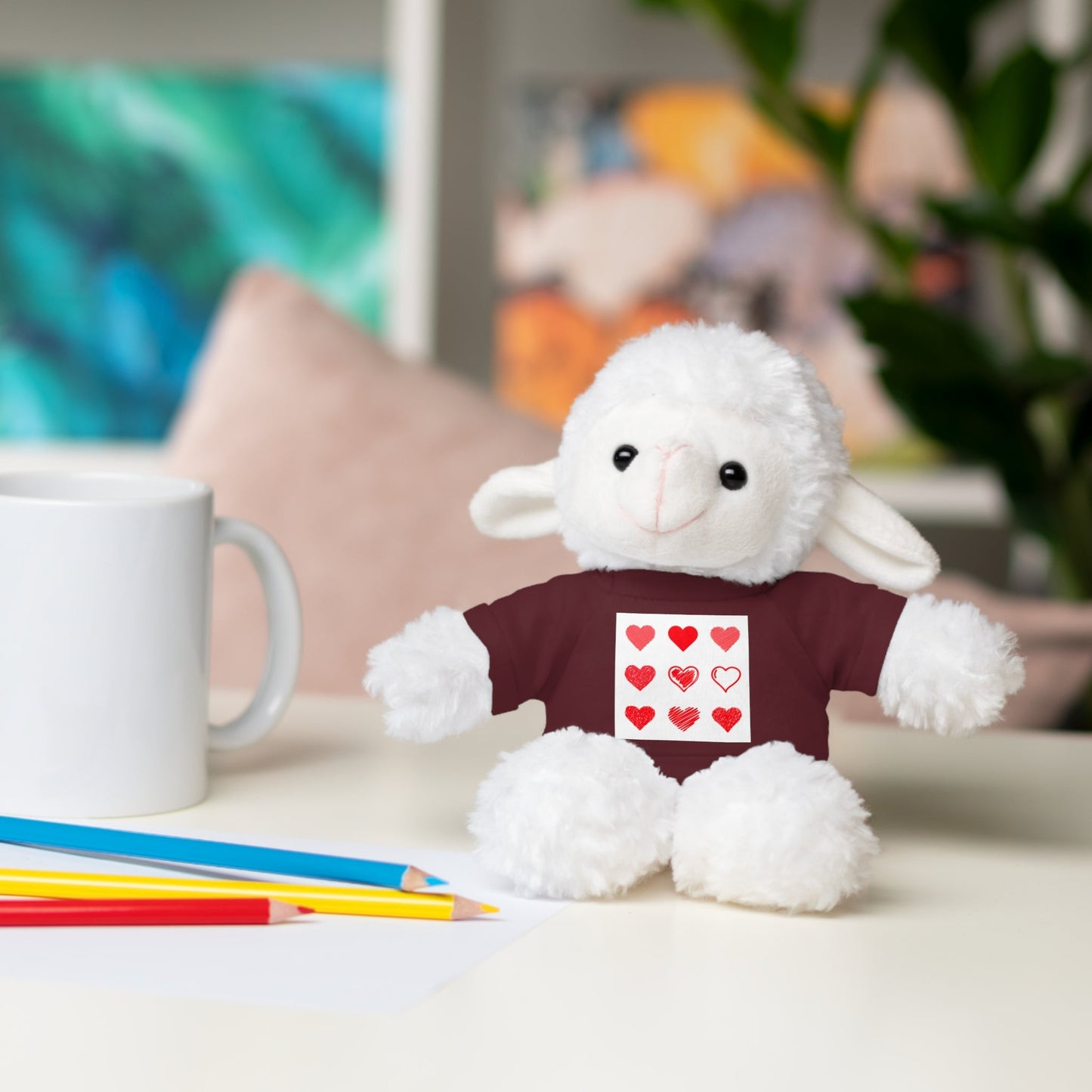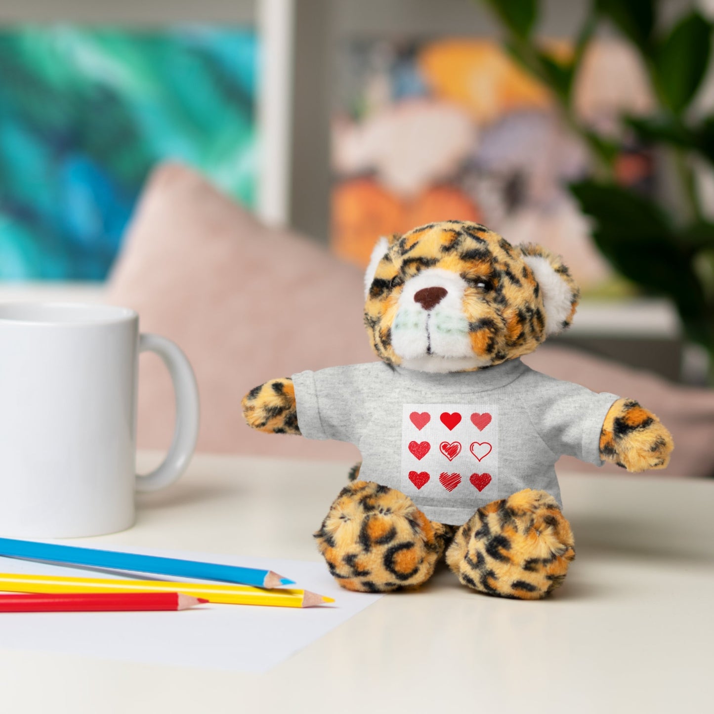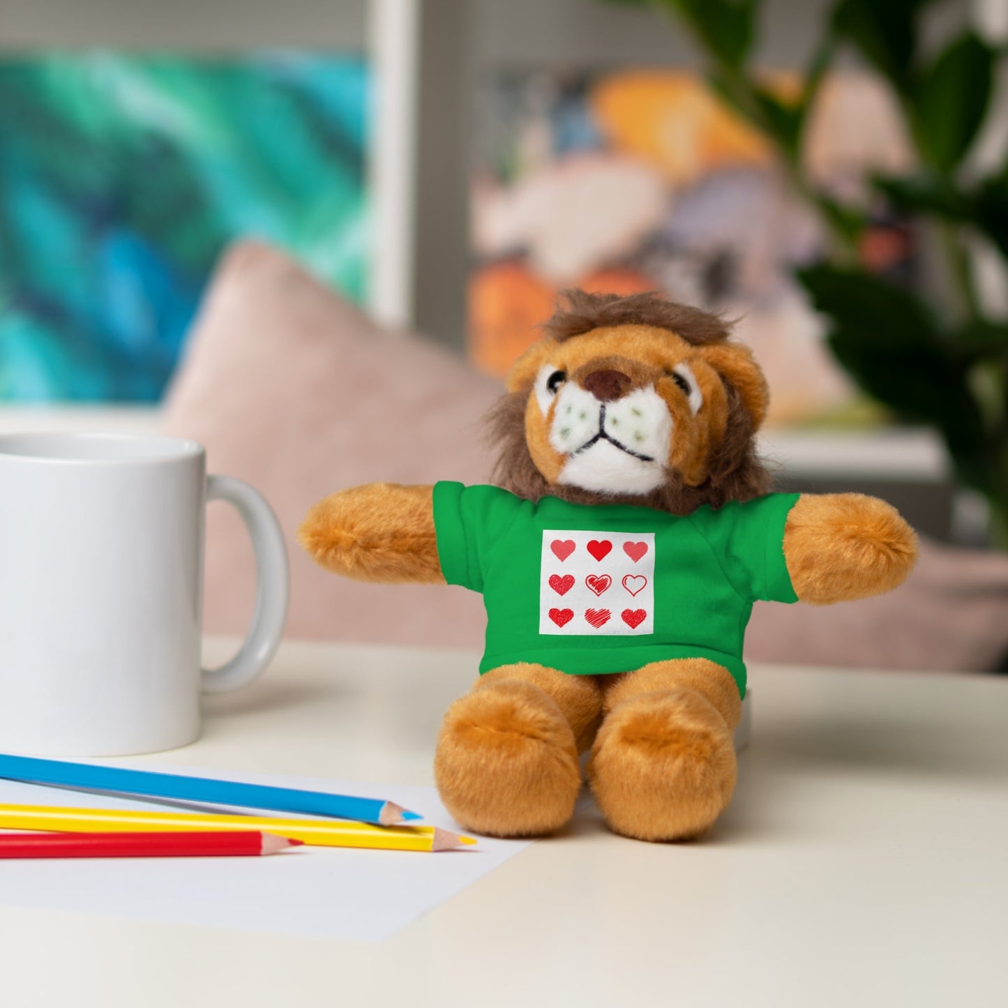 Created to put ear-to-ear smiles on any child, these stuffed animals come with a playful attitude and customizable tees. Each plushie is 8" tall, features polyester and plastic pellet stuffing, while their tees are 100% cotton. Perfect for ages 3+. Available animals: Panda, Lion, Bear, Bunny, Jaguar, and Sheep.