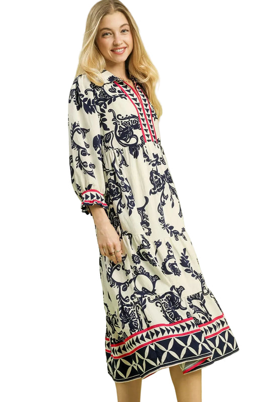 Umgee Boho Print Tiered Midi Dress