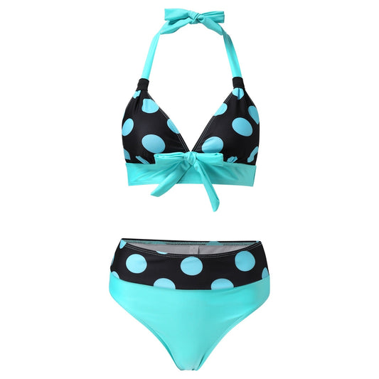 Plus Size Polka Dot Print High-waisted Bikini Sets Swimsuit Women Sexy Bow-knot