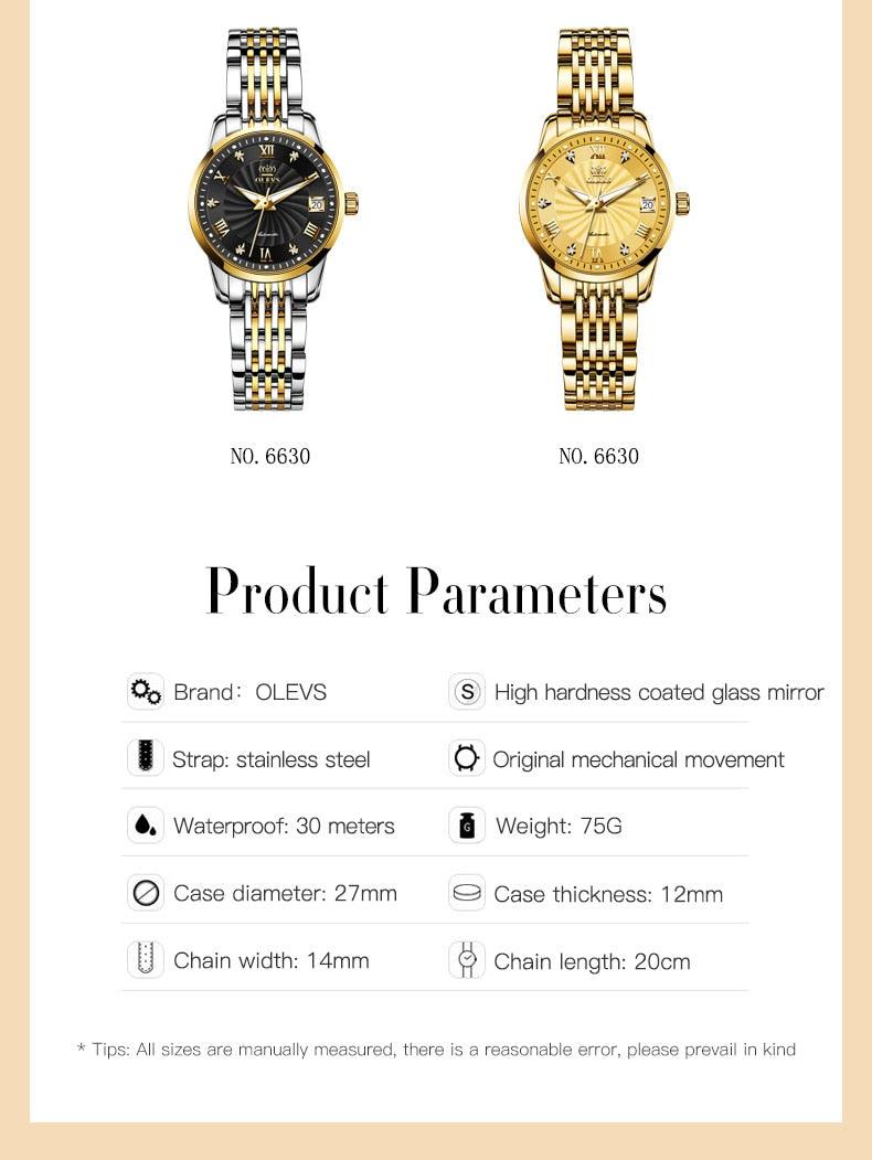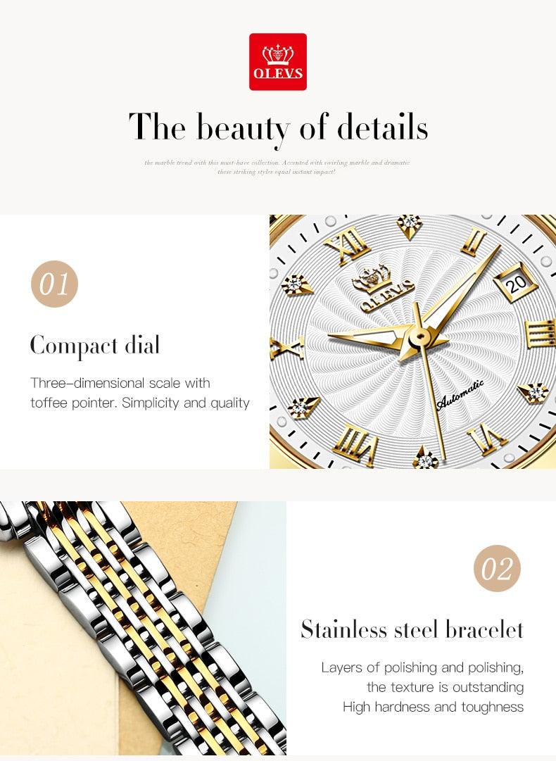 Gold Automatic Watch Luxury Waterproof Mechanical