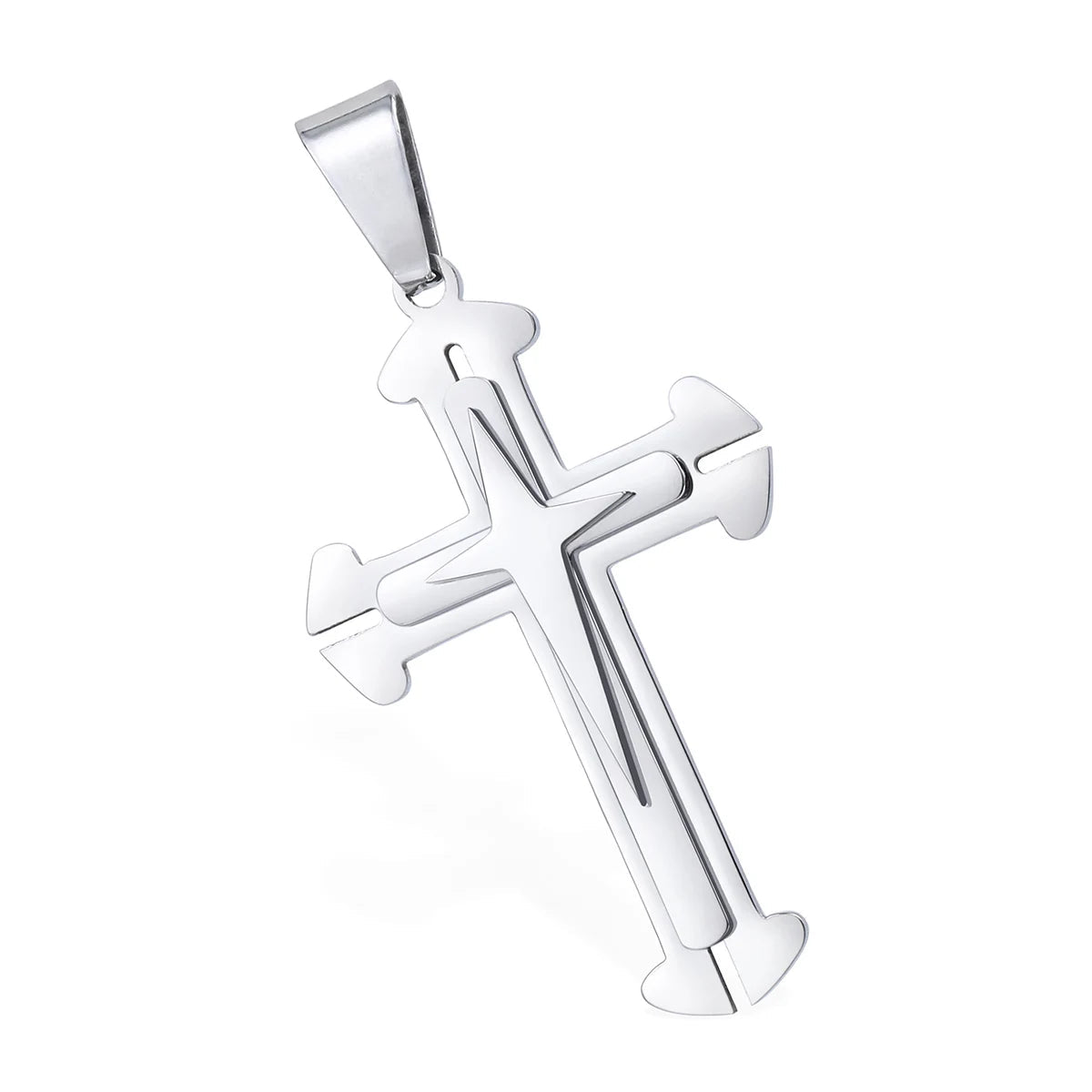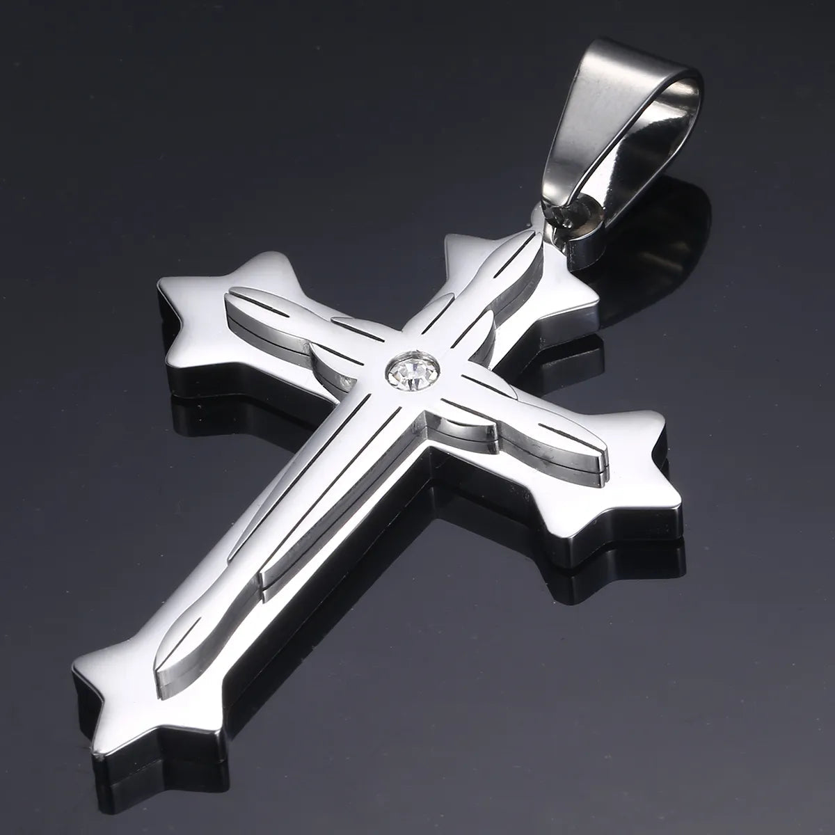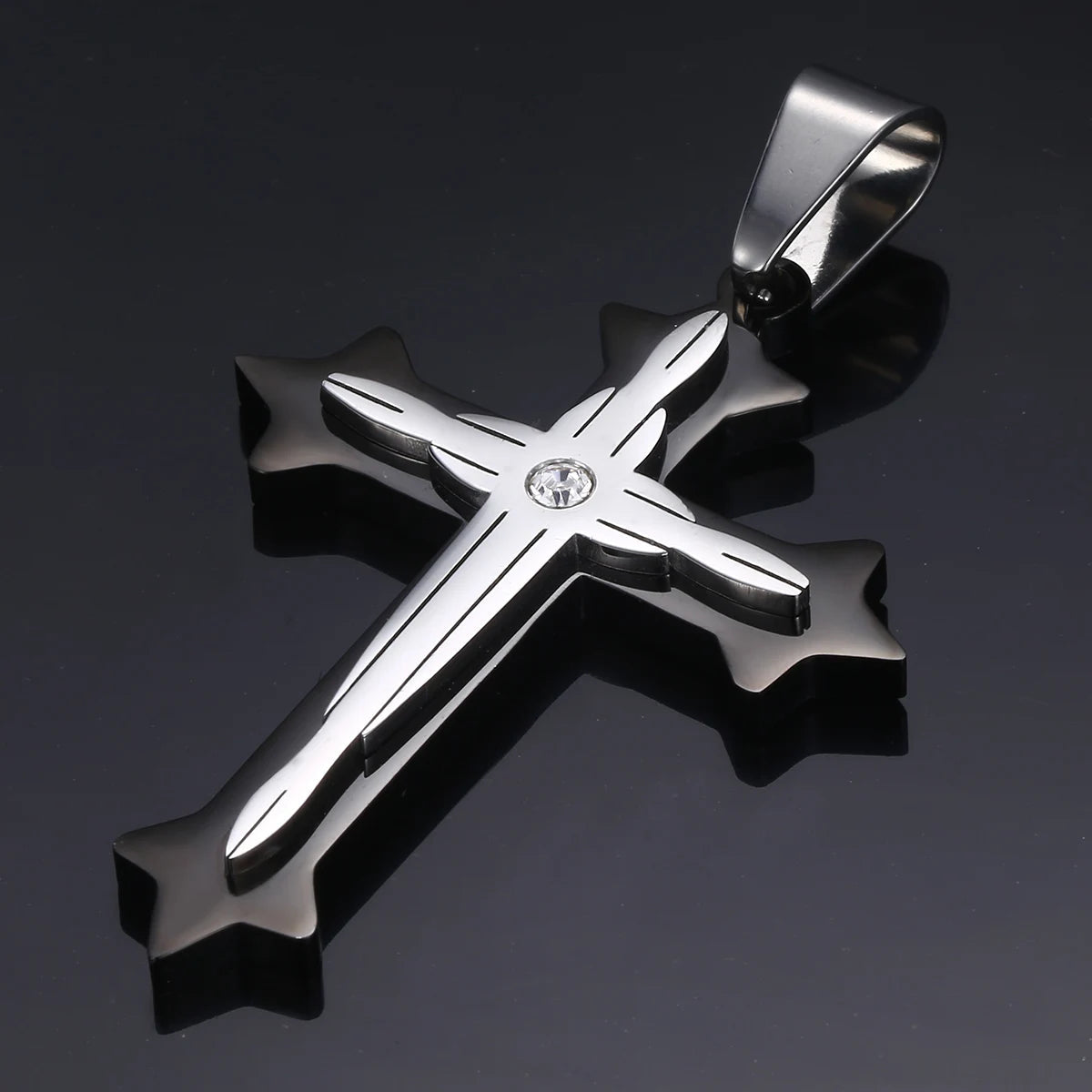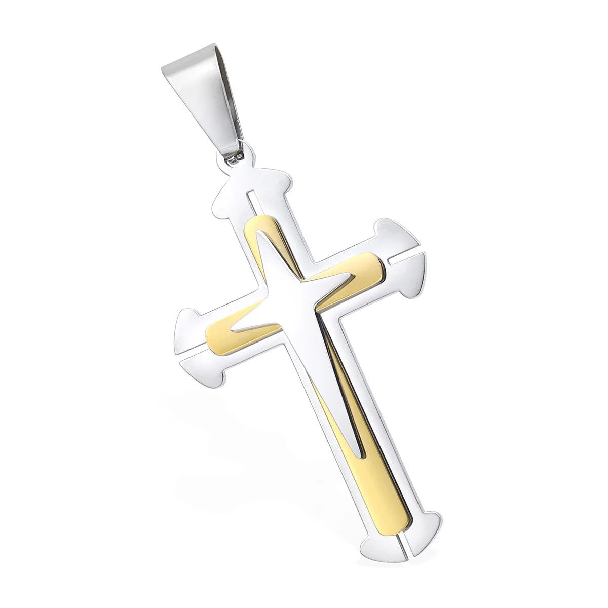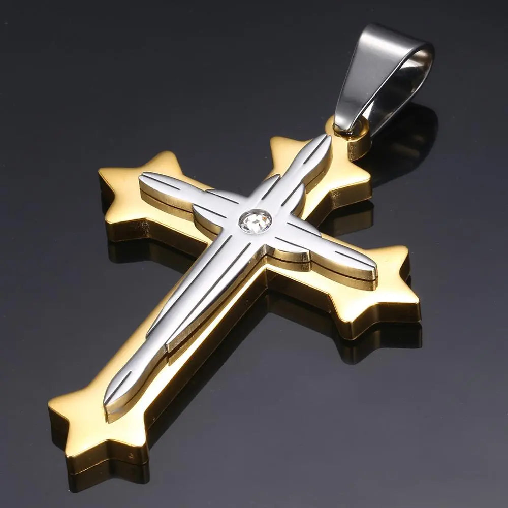 Gold Silver Color Cross Pendant Necklace Stainless Steel Jewelry