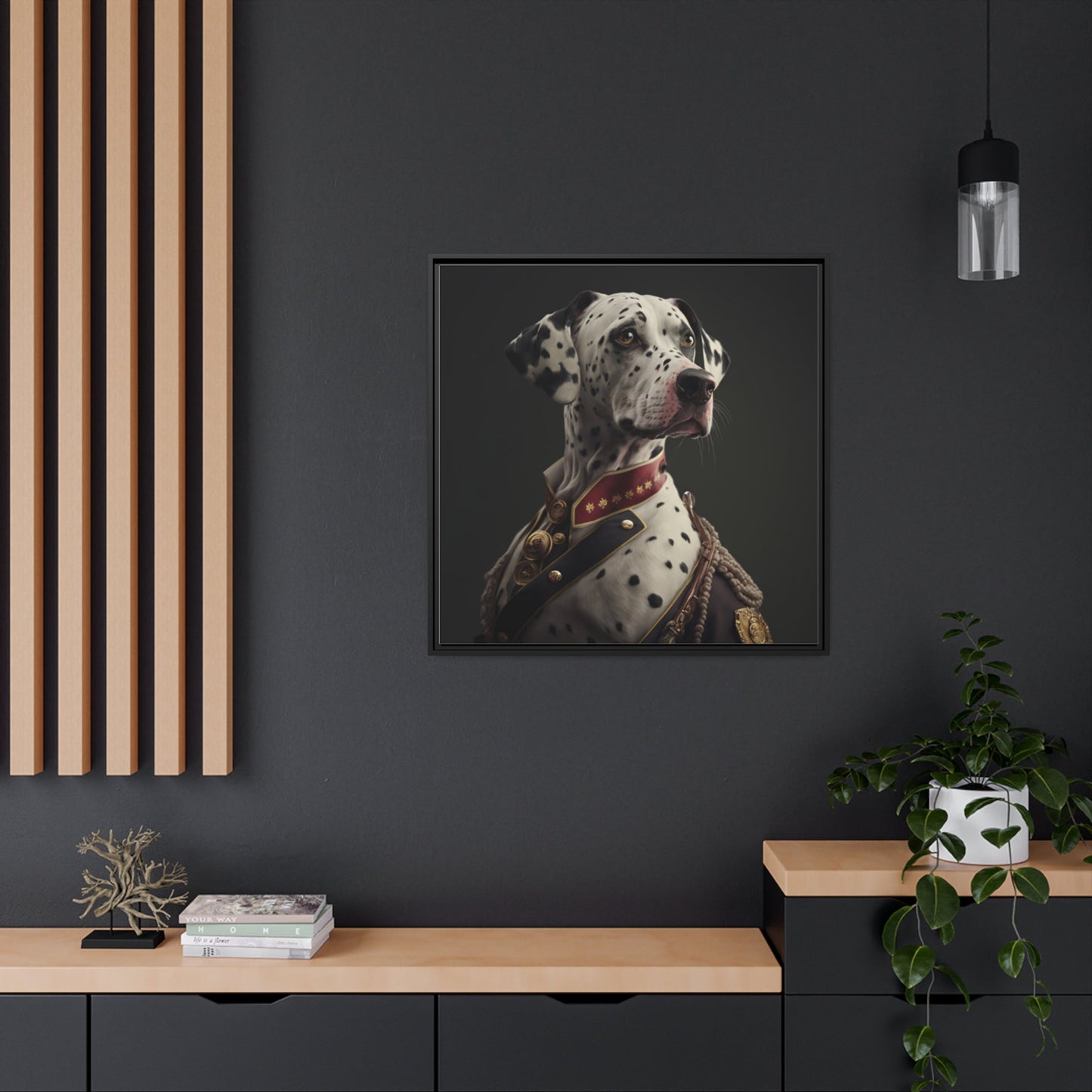 Matte Canvas, Black Frame Dalmatian with a Patriotic Past: Civil War Military Uniform
