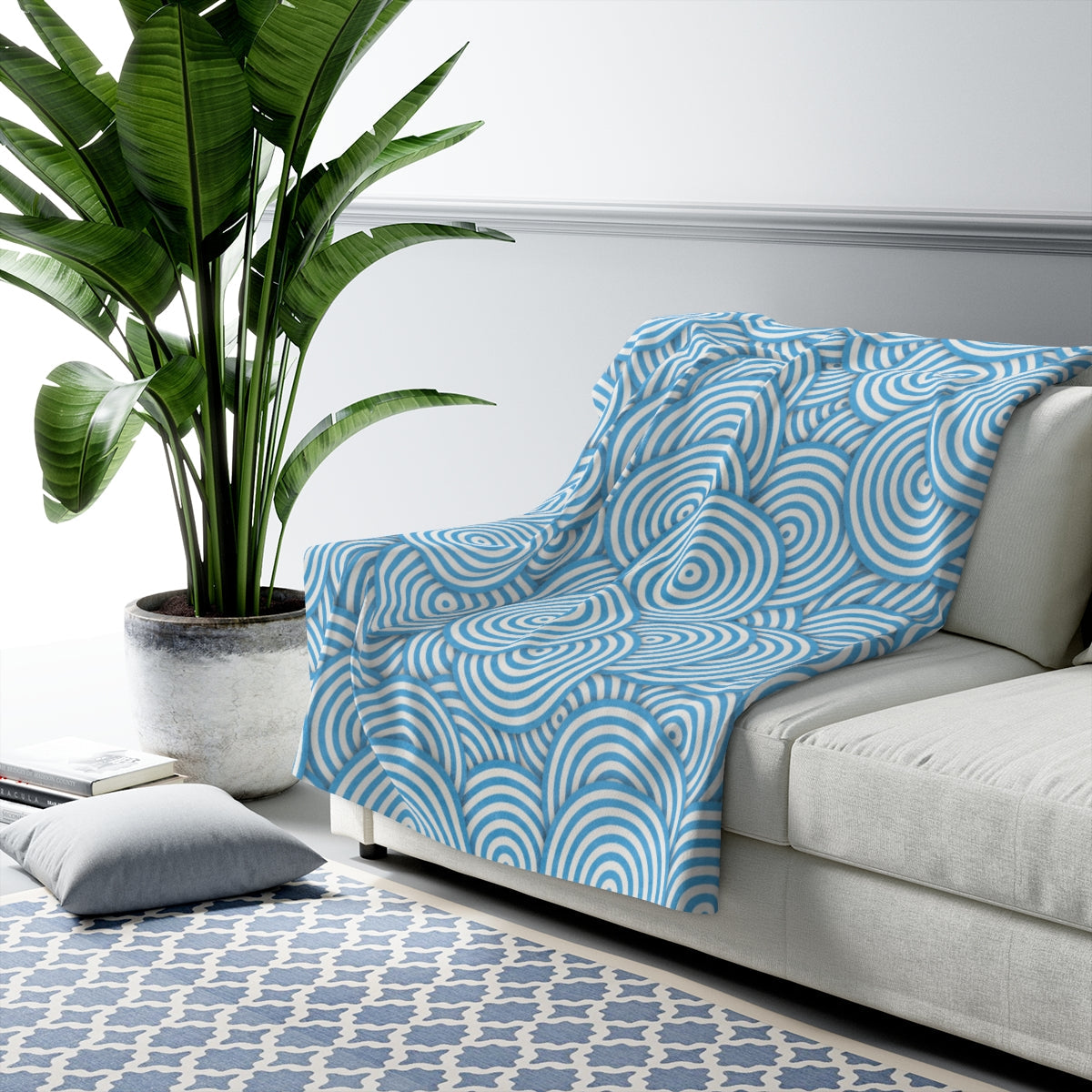 Blue Vintage Circle Sherpa Fleece Blanket