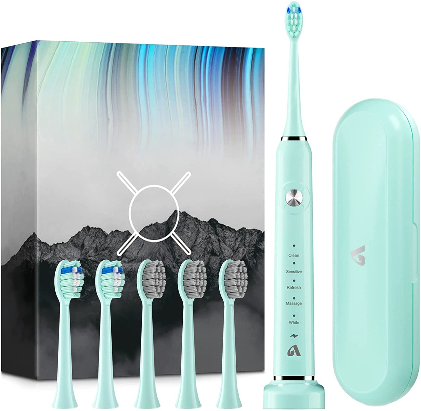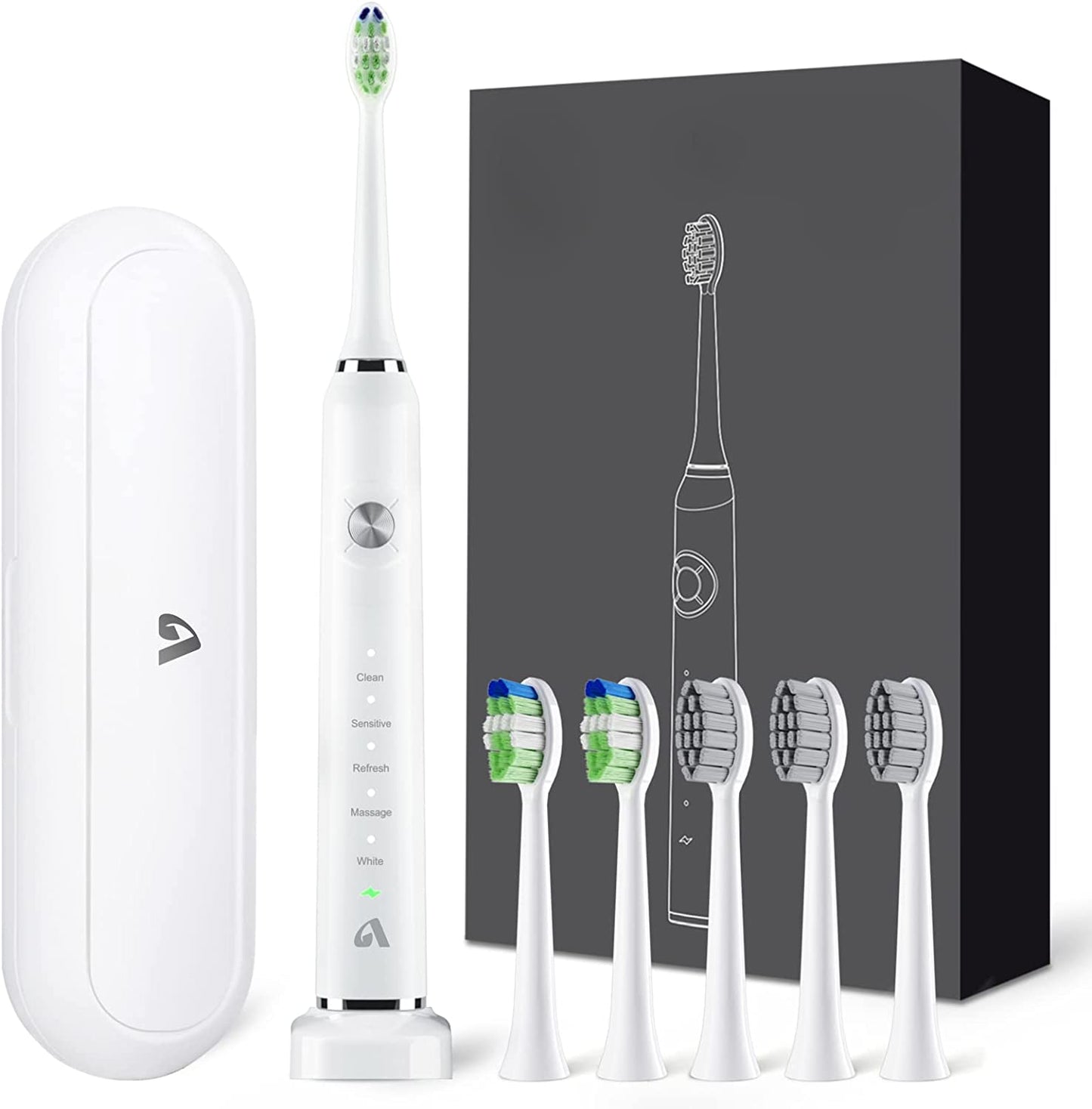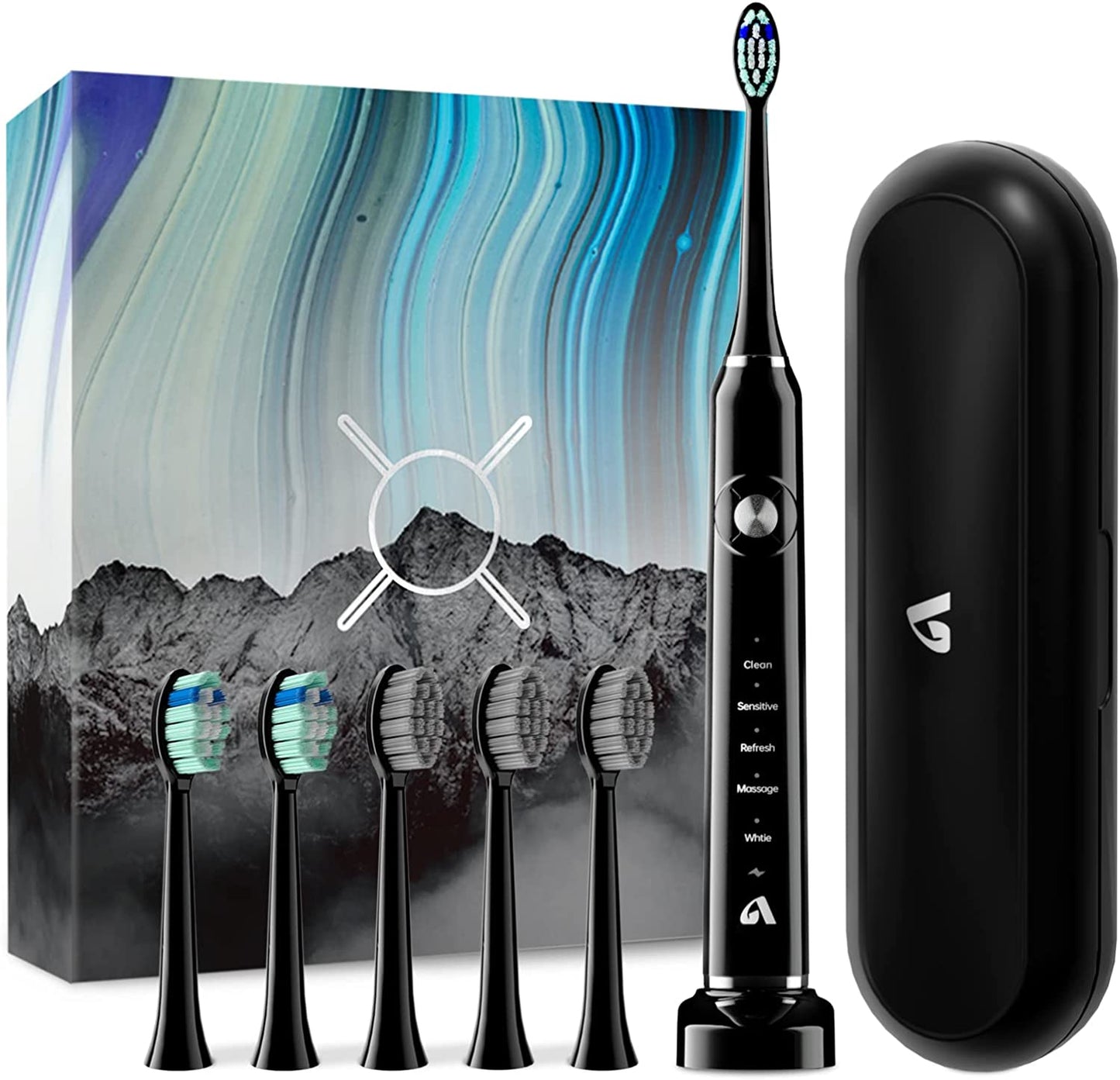 - Sonic Toothbrush Electric Toothbrush with 6 Brush Heads and Travel Case, Wireless Fast Charging, and Long Life, Smart Timer 5 Modes Whitening Toothbrushes Black