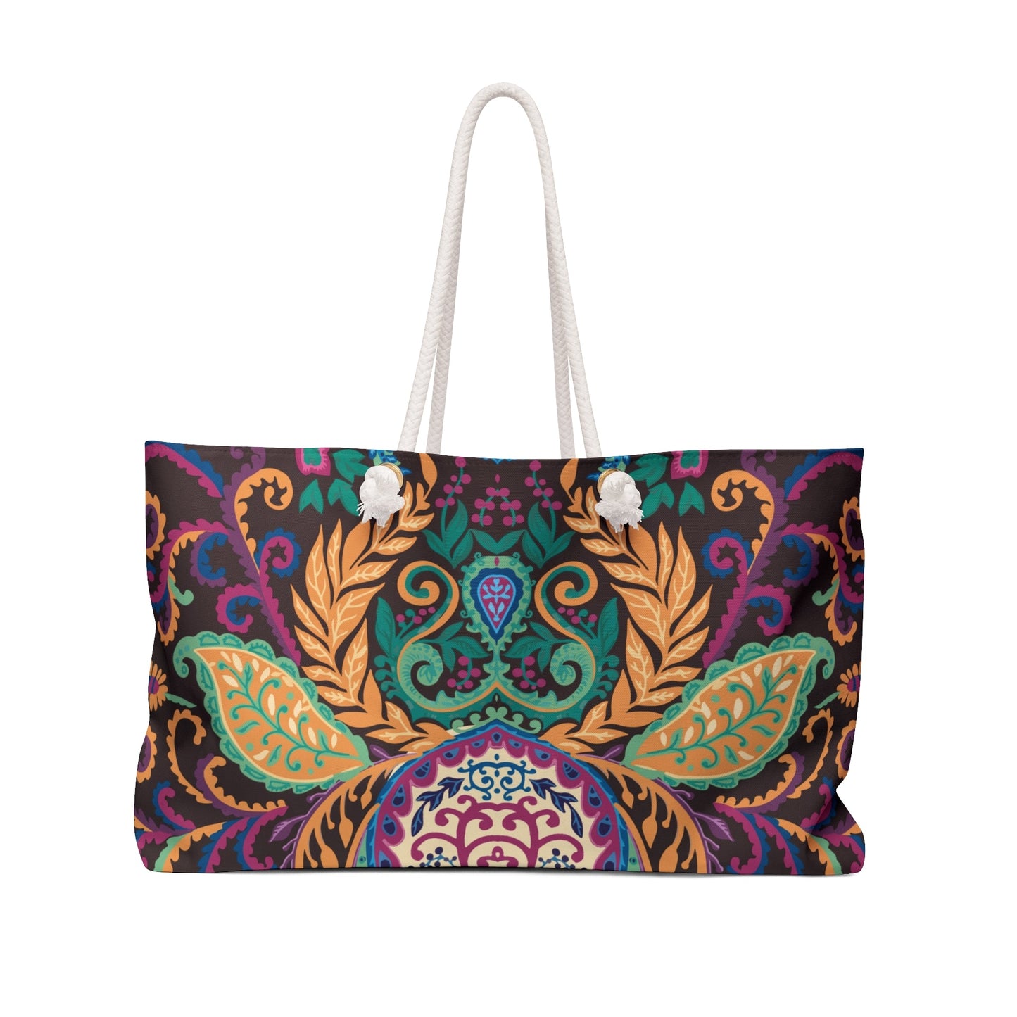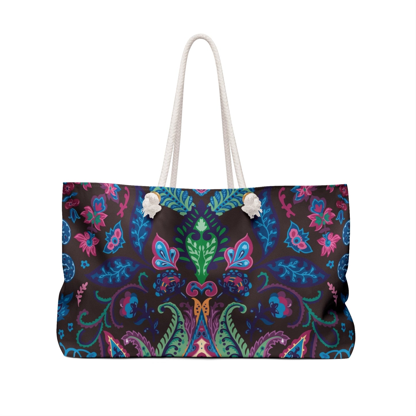 Our oversized Weekender Tote is perfect for your weekend at the beach or in town. The wide-mouthed, durable bag holds a generous amount of personal items and is easily held by its thick rope handles.