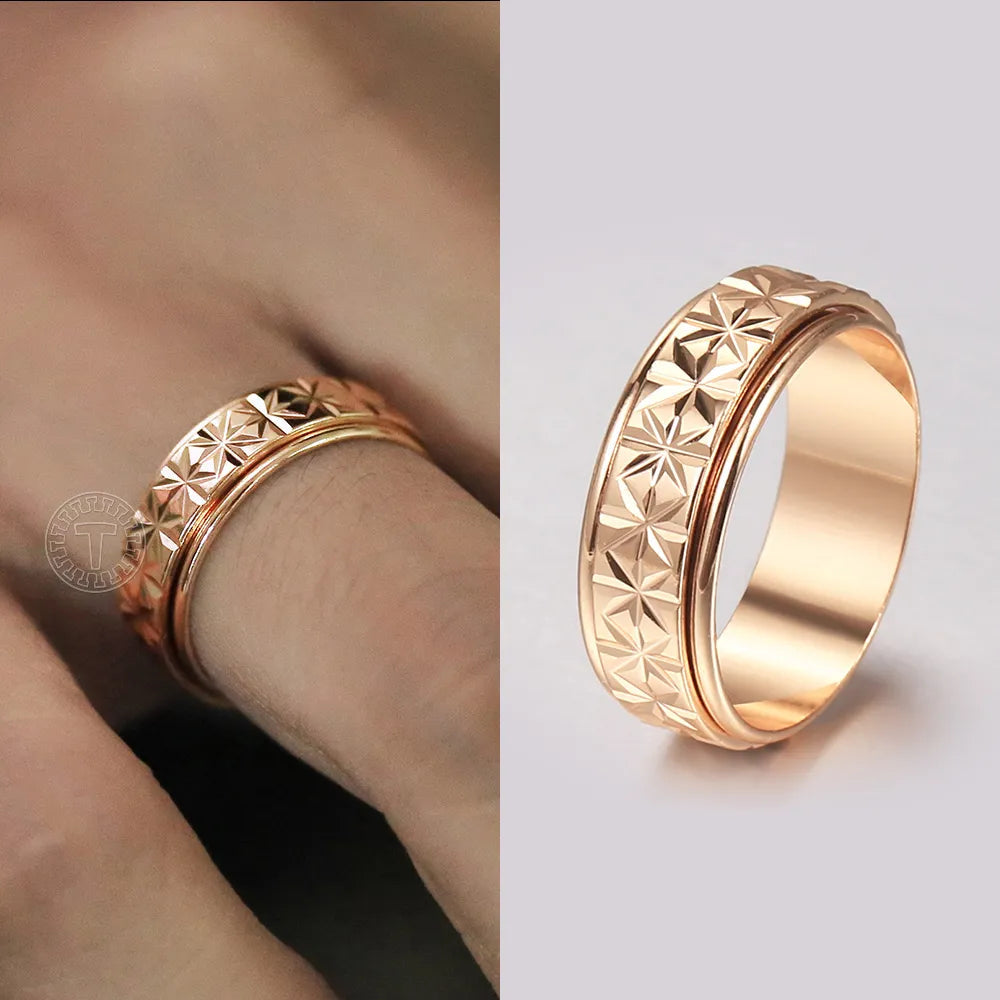 Rotatable Matte Engagement Anxiety Rings Spinner Rings 585 Rose Gold Color