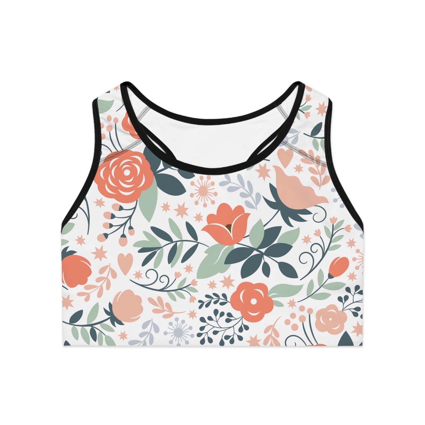 On the lookout for a comfortable sports bra that comes packed with style? This is the one - with an all-over-print that is yours to customize, a compression fit that delivers incredible support during peak activity, and a double-layer front - this sports bra has it all: custom style, support, and 360-degree comfort.