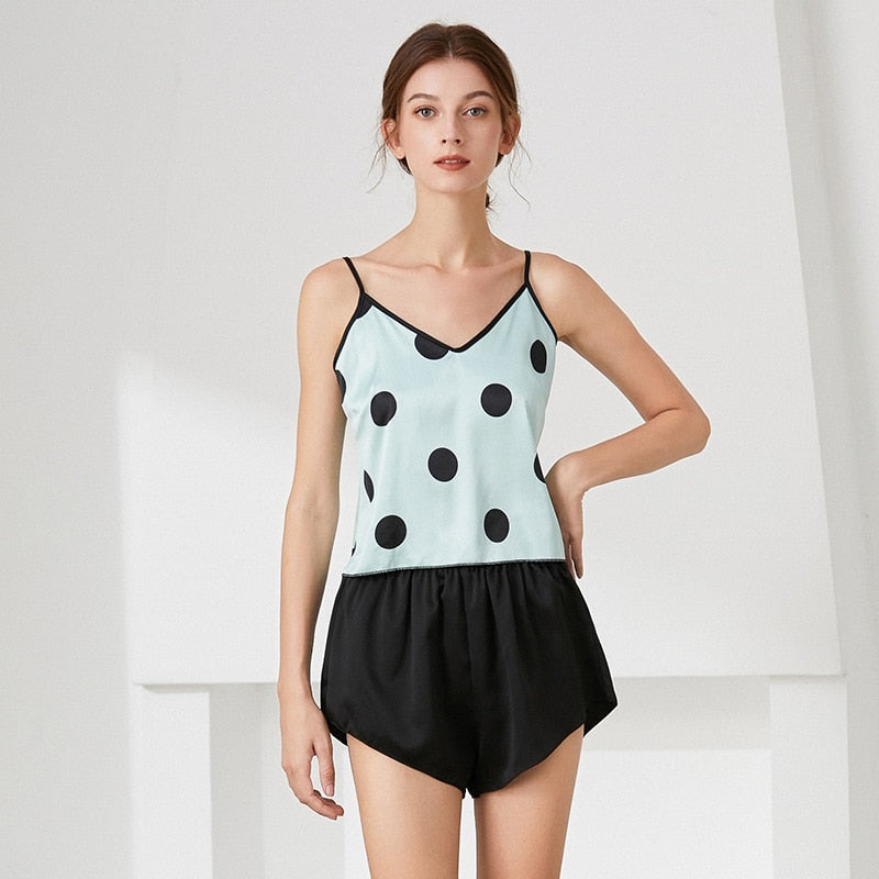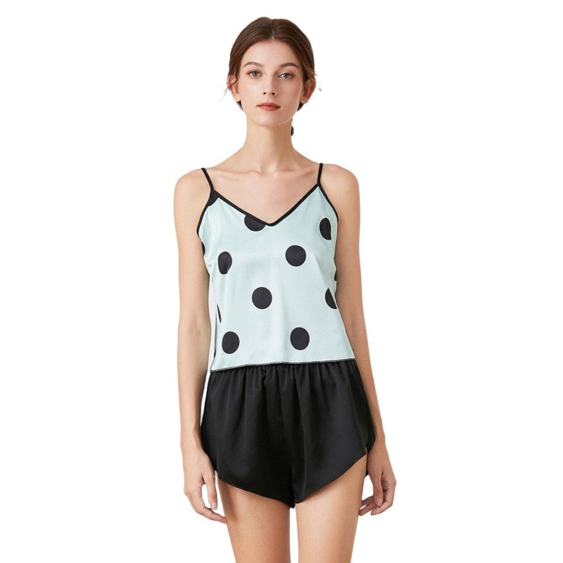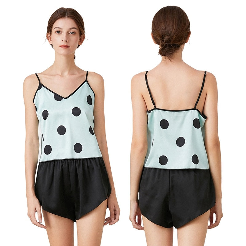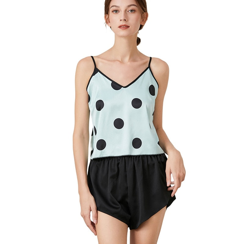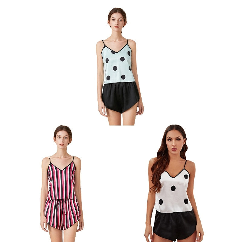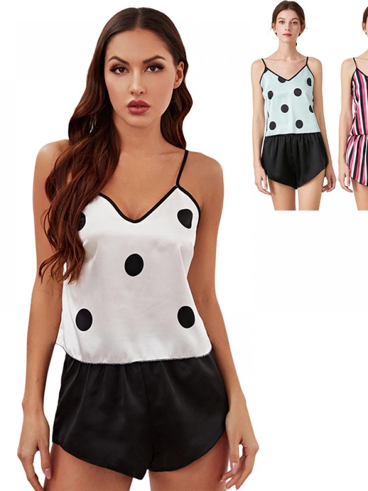 Women's Satin Pajama Sets Sexy Lingerie Sleepwear Polka Dot